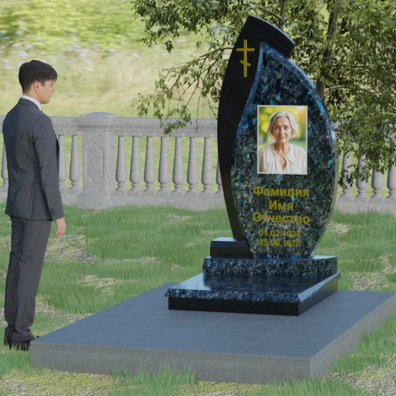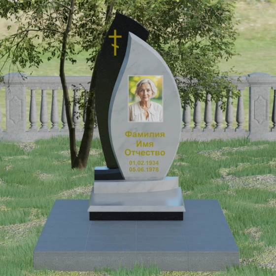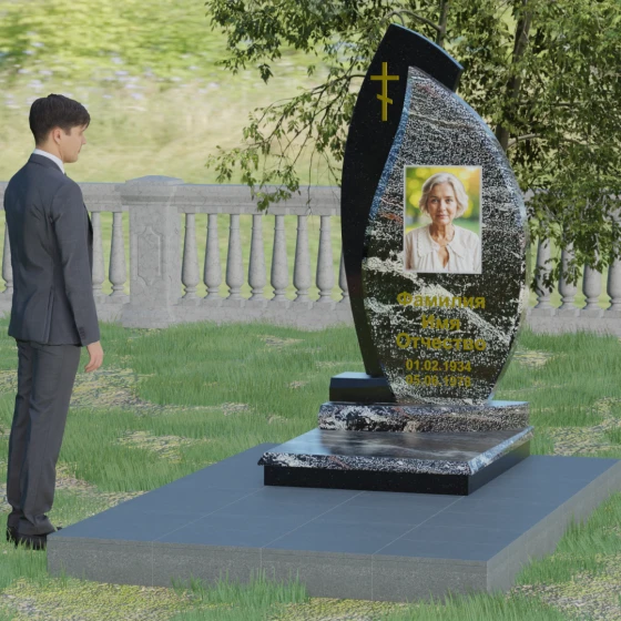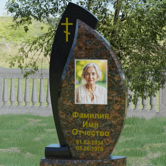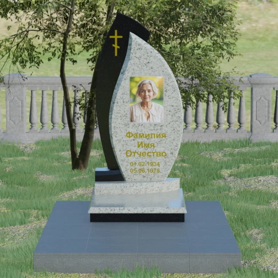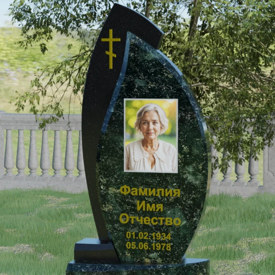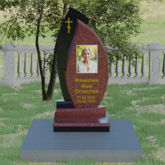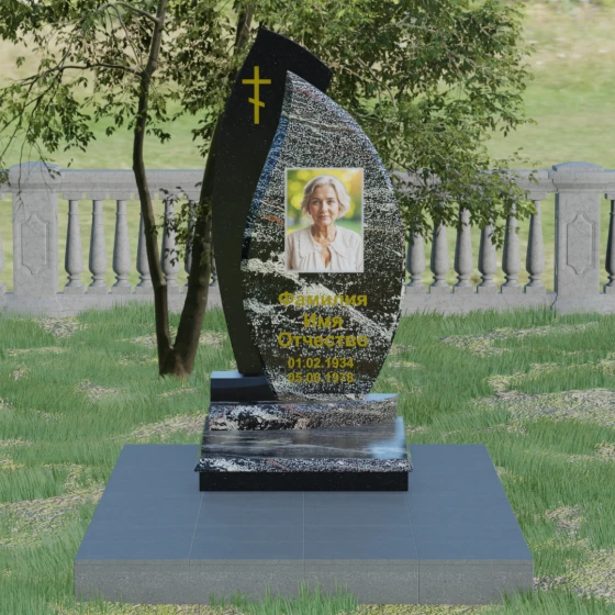 Кому подойдет: Данная модель является универсальным и в то же время глубоко индивидуальным решением. Благодаря мягким изгибам центральной части, она идеально подходит для оформления женских захоронений, воплощая нежность и материнскую любовь. В то же время строгая внешняя рама и возможность исполнения в темных, маскулинных тонах (например, в черном Габбро или зеленом граните Балтик грин) делают этот гранитный монумент достойным выбором для мужчины — отца, мужа или брата. Это памятник для тех, кто ценит современный стиль, надежность и хочет выделить место памяти среди типовых решений за счет уникальной формы и премиального сочетания материалов.