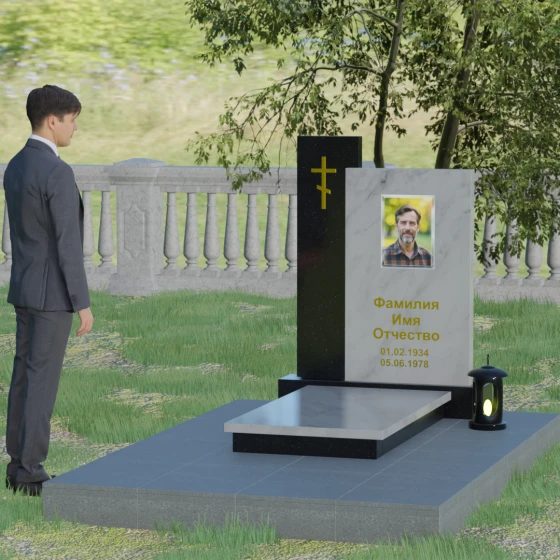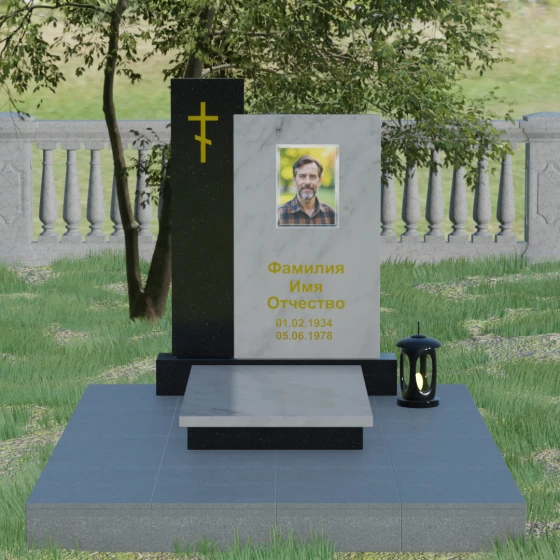 Кому подойдет: Благодаря своей строгой геометрии и асимметричному дизайну, этот памятник является универсальным и благородным решением. Лаконичность форм и отсутствие излишнего декора делают его идеальным для оформления мужского захоронения (отцу, мужу или брату), подчеркивая твердость и достоинство. В то же время, при использовании цветного гранита или светлого мрамора, модель прекрасно подойдет для женского или семейного мемориала. Это выбор тех, кто ищет баланс между традиционными символами веры и современной европейской архитектурой в ритуальном искусстве.