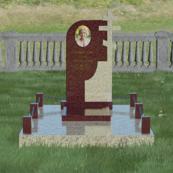 Выбор мемориального комплекса — это всегда глубоко личный процесс, стремление выразить в камне ту любовь и уважение, которые мы храним в сердце. Модель под артикулом 019 создана для тех, кто ценит благородную асимметрию и глубокий символизм. Величественная стела представляет собой сложную художественную композицию, в которой мастерски скомбинированы две контрастные фактуры. Левая часть памятника имеет мягкий, плавный изгиб, символизирующий завершенный жизненный путь, наполненный светом и душевным теплом. Правая же сторона акцентирована монументальным православным крестом, который является не просто элементом оформления, а неотъемлемой частью самой конструкции.
