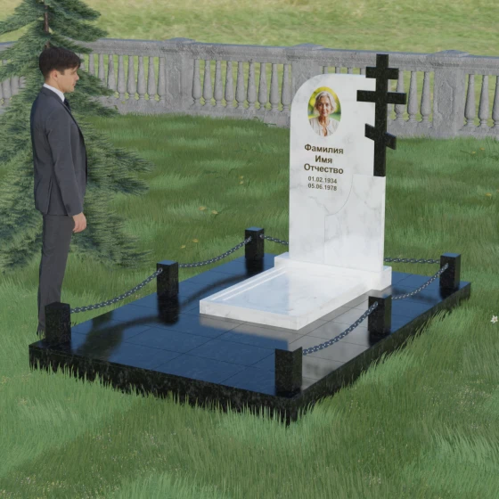 Завершенность композиции придает массивный гранитный цоколь и декоративное ограждение. По углам участка располагаются строгие каменные столбики с аккуратной фаской, соединенные декоративными цепями. Это создает четкие границы сакрального пространства, подчеркивая уединенность и покой. Каждый элемент — от массивного основания до вершины креста — подогнан с ювелирной точностью, формируя единый ансамбль, который будет служить достойным воплощением вашей памяти. Мы поможем вам на каждом этапе, чтобы этот сложный выбор стал шагом к обретению душевного равновесия и созданию места, куда захочется приходить для тихой беседы с тем, кто навсегда остался в вашем сердце.