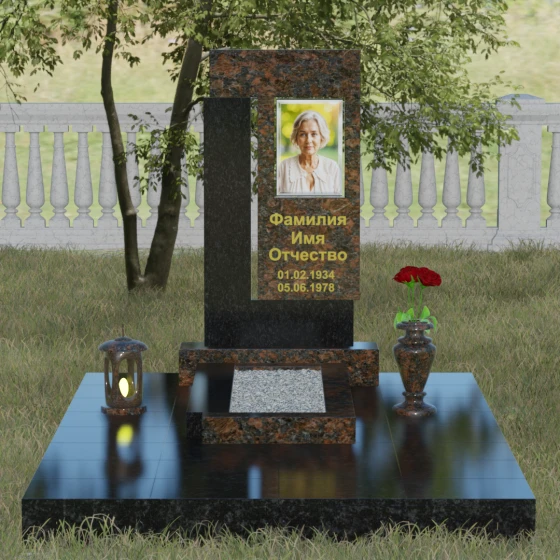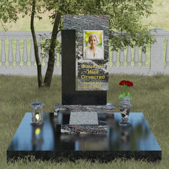 Архитектурное решение стелы предусматривает выделенную зону для портрета, которая может быть оформлена как в виде классической фотокерамики в овальной нише, так и методом художественной лазерной гравировки. Золоченая или вырубленная в камне надпись располагается на контрастном фоне, что обеспечивает отличную читаемость даже на расстоянии. Мы предлагаем этот проект в 8 уникальных цветовых исполнениях, что позволяет наделить мемориал индивидуальным характером. Вы можете выбрать глубокий черный гранит Габбро-диабаз, благородный серо-белый Мансуровский гранит, насыщенный красный Лезниковский, строгий Дымовский, изысканный Блю Перл с его синими искрами, текстурный Амфиболит, зеленый Балтик Грин или белоснежный мрамор Тассо.