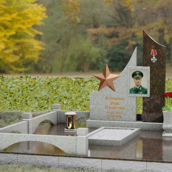 Форма данного ансамбля наполнена глубокими метафорами. Разновысотные элементы символизируют разные этапы жизненного пути, а восходящие линии стелы — стремление души к свету и вечному покою. Пятиконечная звезда и боевая награда являются не просто знаками отличия, а символами защиты, верности долгу и несгибаемой воли. Закрытая структура основания и наличие каменного ограждения (цоколя) создают ощущение приватности и защищенности, превращая место захоронения в священный островок тишины и памяти, где время словно замедляет свой бег.