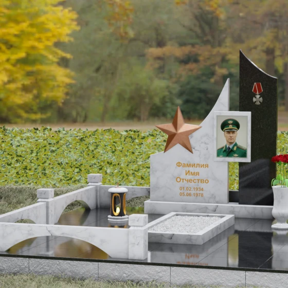 Создание достойного места упокоения — это сложная архитектурная задача, требующая баланса между монументальной строгостью и глубокой личной историей. Данное ритуальное изделие представляет собой сложную многокомпонентную композицию, призванную увековечить память о человеке, чья жизнь была неразрывно связана со служением, честью и доблестью. В каждой линии этого ансамбля читается преемственность поколений и непоколебимость духа, а использование благородных пород камня гарантирует сохранность мемориала на многие столетия.