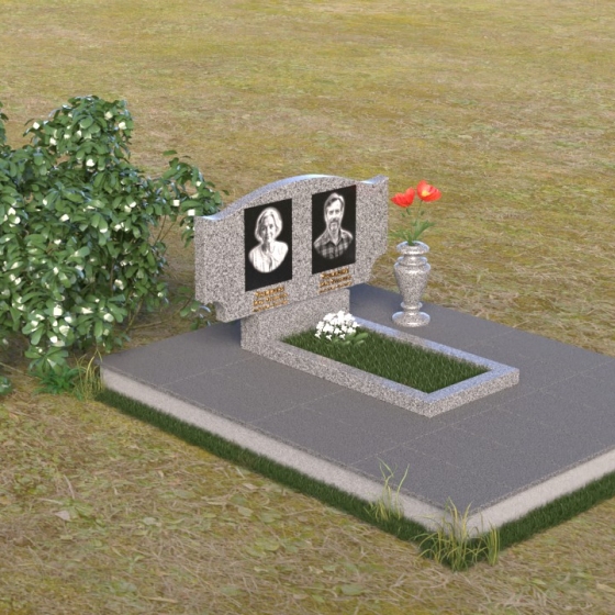 Этот гранитный монумент привлекает внимание своей плавной, обтекаемой формой. Верхняя часть надгробного сооружения представляет собой дугу с легким изгибом, напоминающим колыбель или волну, бережно укрывающую покой. Боковые грани скруглены, что придает памятнику мягкость и умиротворенность. Фаска, аккуратно снятая по периметру, подчеркивает четкость линий и добавляет изделию изысканности. Нижняя часть монумента выполнена в форме прямоугольника, создавая устойчивое основание и визуальный баланс. Дополнительная горизонтальная плита, расположенная на основании, добавляет композиции завершенность и предоставляет место для нанесения эпитафий или размещения цветов.