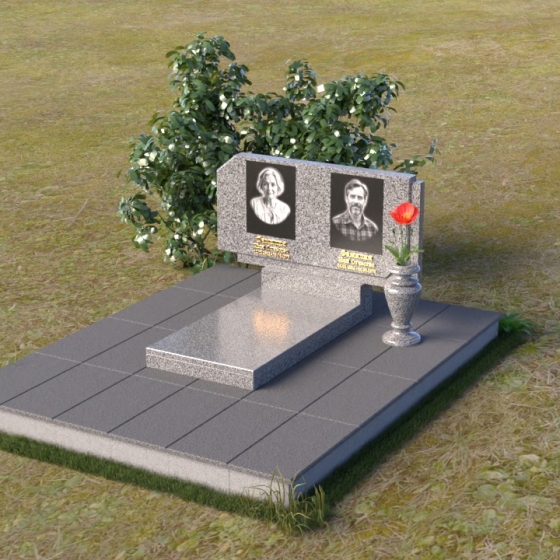 Памятник ПГ025 – это монументальное выражение скорби и вечной памяти. Его строгие линии и лаконичные формы говорят о сдержанной элегантности и глубоком уважении. Стела имеет прямоугольную форму, однако верхние углы скошены, что придает ей особую выразительность и визуальную легкость. Грани стелы тщательно отполированы, создавая зеркальную поверхность, которая отражает свет и придает камню глубину и благородство. На лицевой стороне стелы располагаются два портрета, выполненные с высокой степенью детализации. Под портретами выгравированы надписи, выполненные строгим шрифтом.