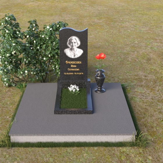 Величественная стела ПВ 029 воплощает в себе гармонию простоты и изысканности. Ее силуэт, словно застывшая мелодия, устремлен ввысь, к небесам. Верхняя часть памятника имеет мягкий, волнообразный изгиб, напоминающий о плавности жизненного пути. Грани стелы тщательно обработаны, создавая игру света и тени, подчеркивая глубину и фактуру камня. Полированная поверхность черного гранита отражает окружающий мир, словно зеркало, напоминая о бренности бытия и вечности памяти. Нижняя часть стелы, переходящая в горизонтальную плиту, образует единое целое, символизируя прочную основу и нерушимость воспоминаний.