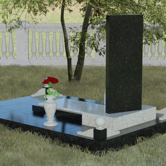 Кому подойдет: Данная модель является универсальной, однако за счет центрального символа — сердца — чаще всего выбирается для оформления женских захоронений. Она станет достойным выражением любви и вечной памяти для матери, супруги, дочери или сестры. Сложная геометрия и наличие декоративных элементов (вазы, шаров) делают это ритуальное изделие идеальным выбором для тех, кто ищет современный, эстетически насыщенный мемориал, сочетающий в себе европейский стиль и традиционную прочность натурального камня.
