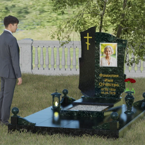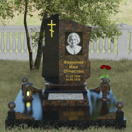 Мы понимаем, как важно передать индивидуальность ушедшего человека, поэтому данная модель доступна в 8 эксклюзивных цветовых решениях. Вы можете выбрать благородный черный гранит Габбро-диабаз, изысканный гранит Амфиболит с его неповторимым рисунком, глубокий Балтик Грин, мерцающий Блю Перл или насыщенный Дымовский. Для создания более теплых или контрастных композиций доступны яркий Лезниковский гранит, белоснежный Мансуровский или премиальный мрамор Тассо. Такое многообразие палитры позволяет подобрать камень, который будет максимально точно соответствовать характеру и жизненному пути дорогого вам человека.