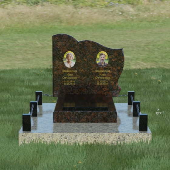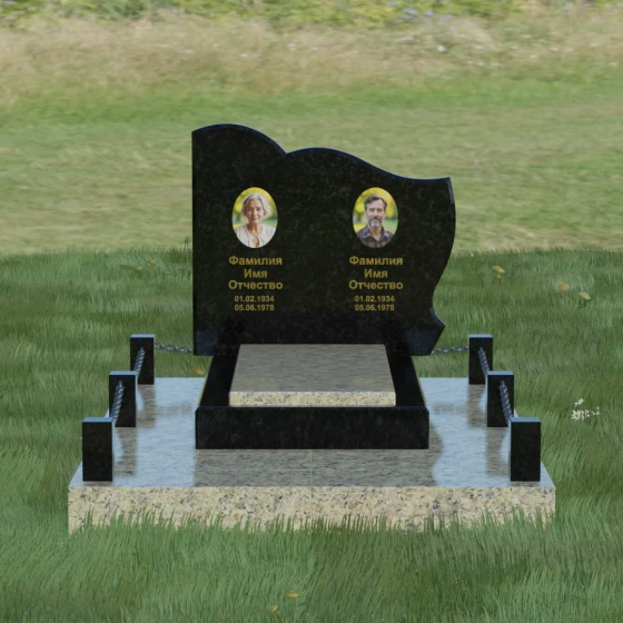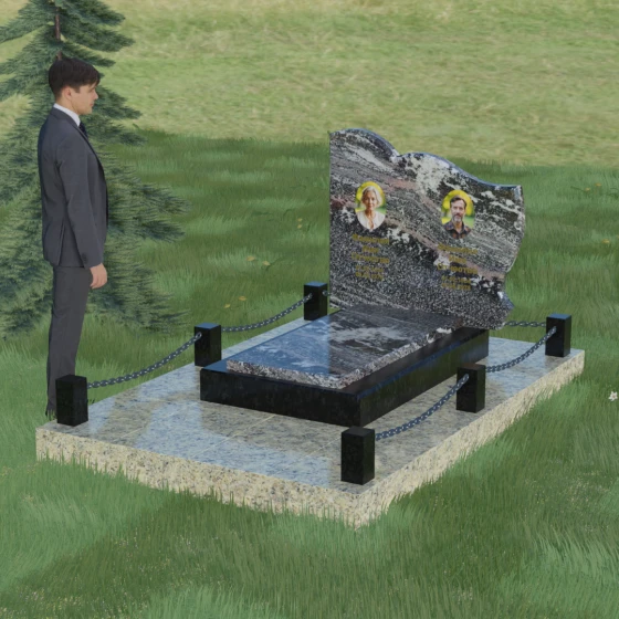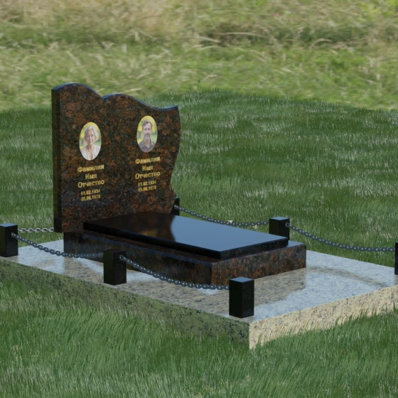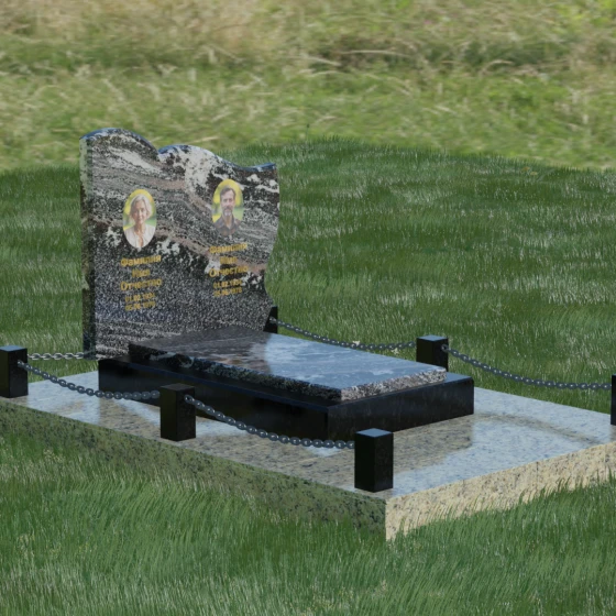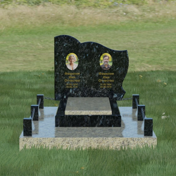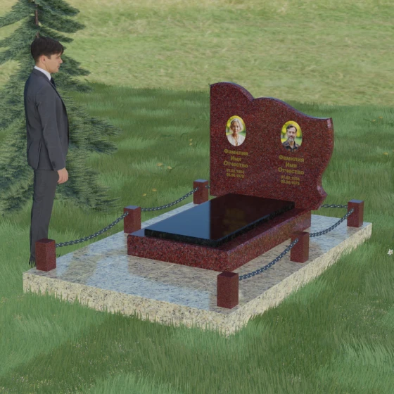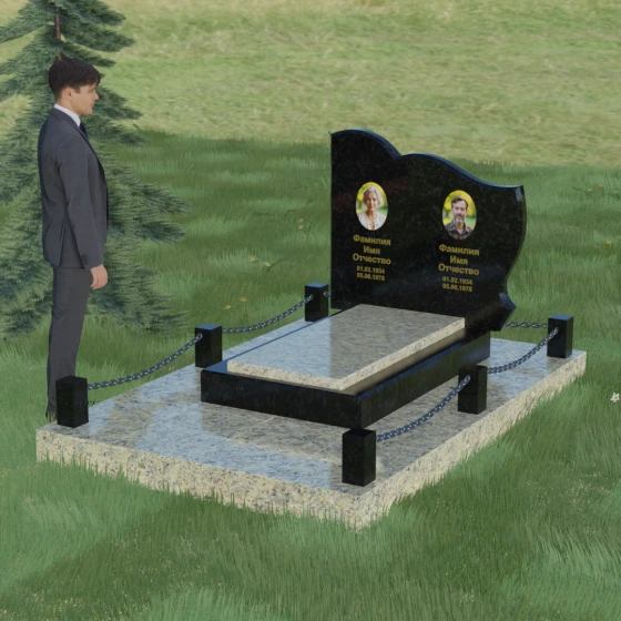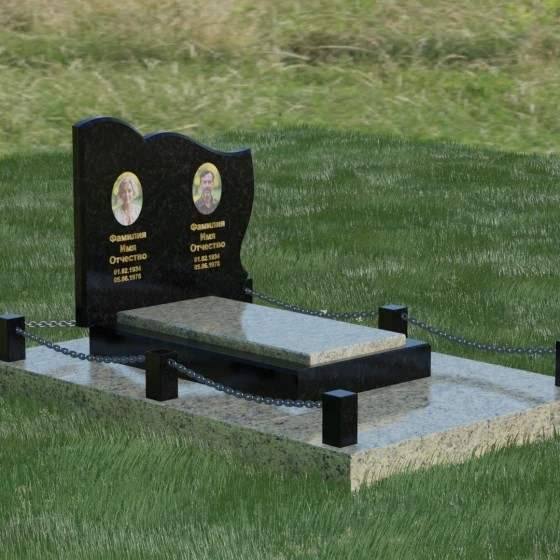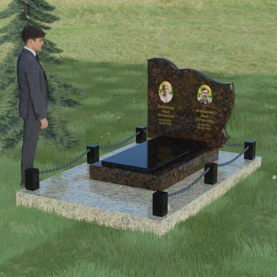 Кому подойдет: Данное решение идеально спроектировано для семейного захоронения на двоих человек (супругов, братьев и сестер или родителей). Горизонтальная ориентация стелы позволяет гармонично разместить два портрета и именные надписи, сохраняя визуальный баланс. Благодаря возможности выбора цвета камня — от торжественного черного до мягкого светлого или насыщенного цветного — этот ансамбль может быть как строгим мужским мемориалом, так и более нежной, светлой композицией. Это выбор тех, кто ценит основательность, комплексный подход к оформлению участка и стремится создать место памяти, которое останется неизменным для многих поколений потомков.
