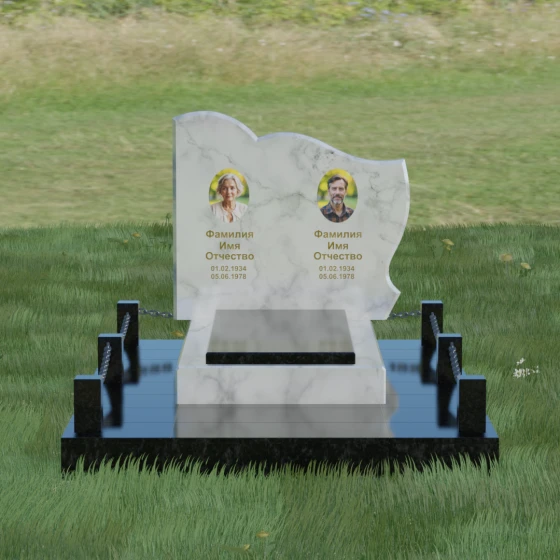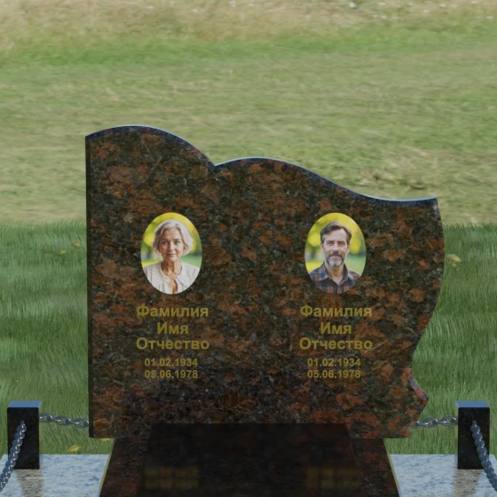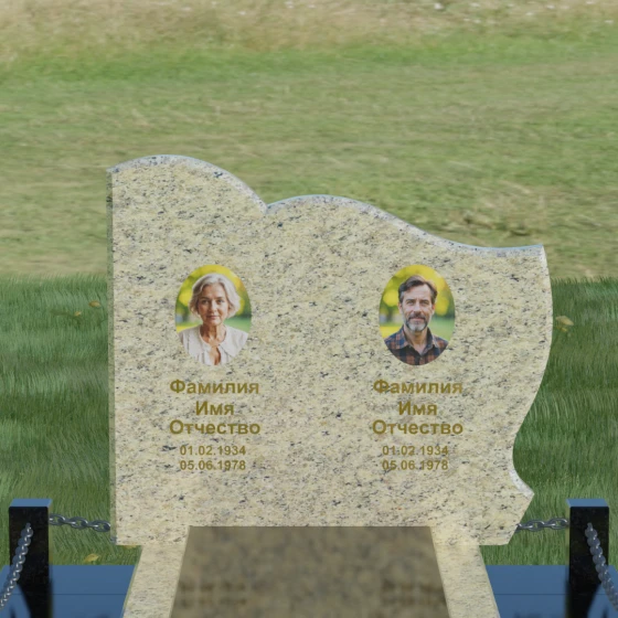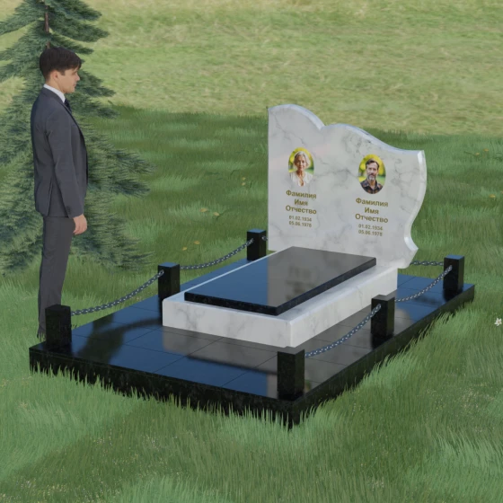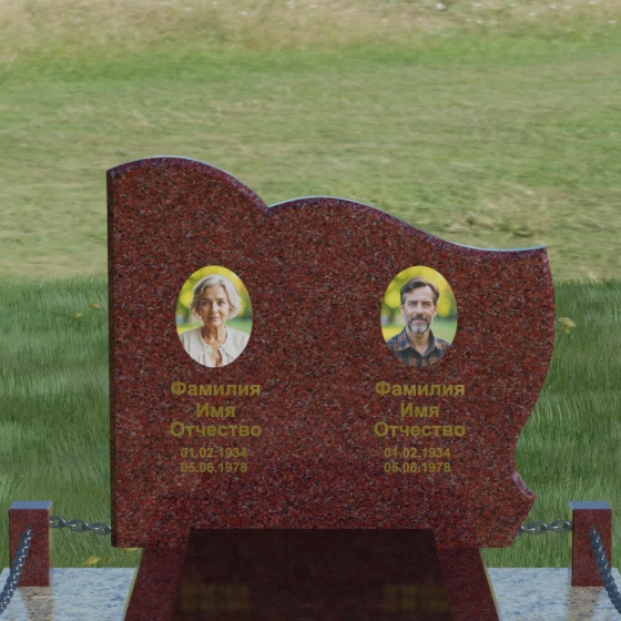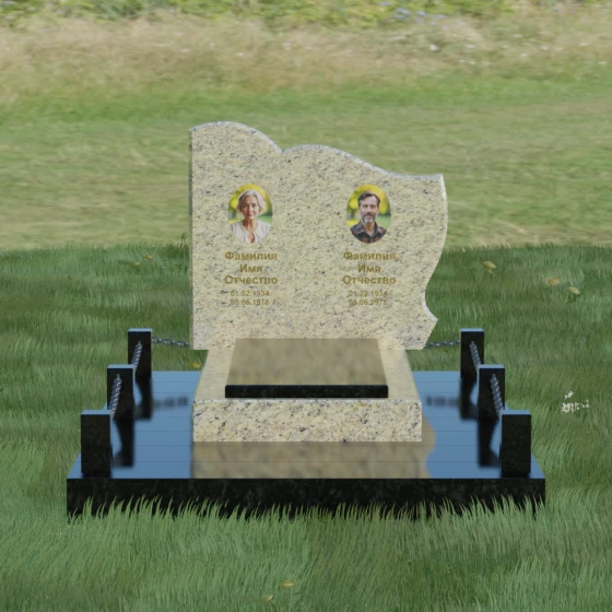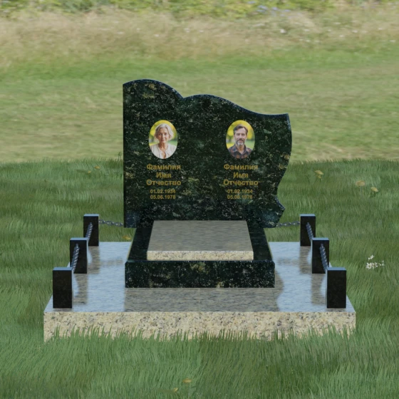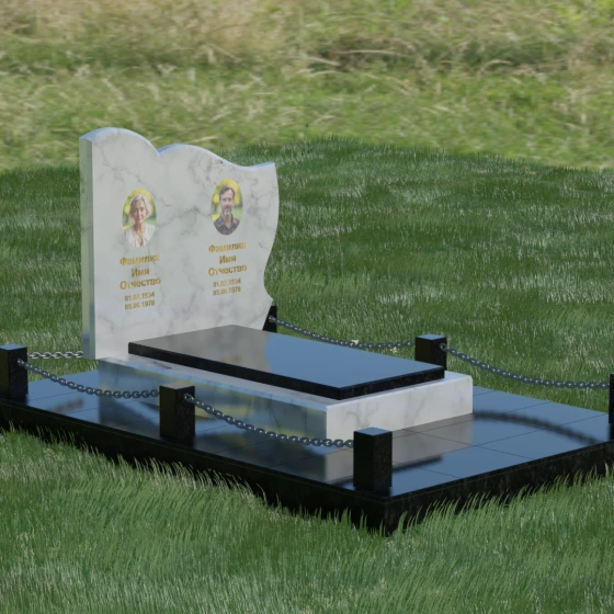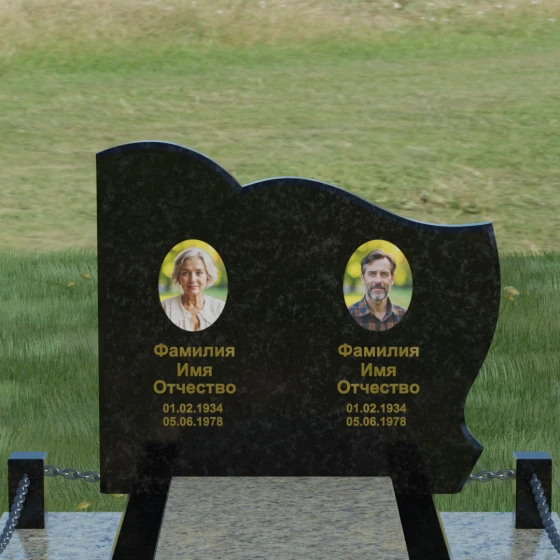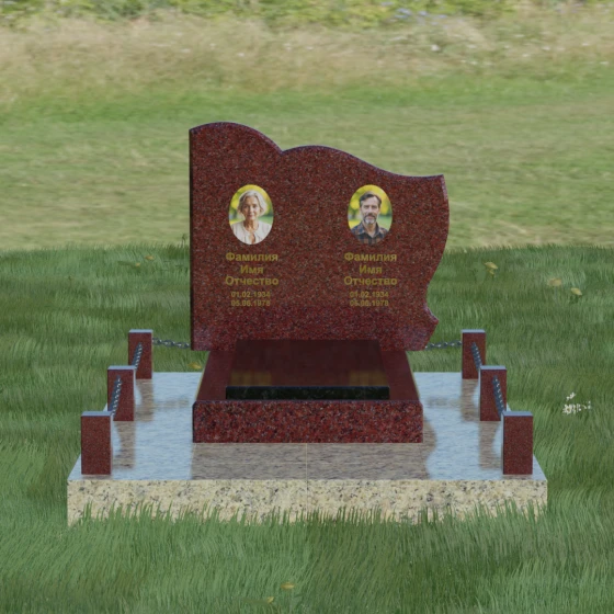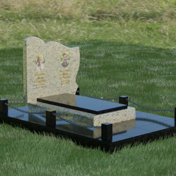 Кому подойдет: Данное решение идеально спроектировано для семейного захоронения на двоих человек (супругов, братьев и сестер или родителей). Горизонтальная ориентация стелы позволяет гармонично разместить два портрета и именные надписи, сохраняя визуальный баланс. Благодаря возможности выбора цвета камня — от торжественного черного до мягкого светлого или насыщенного цветного — этот ансамбль может быть как строгим мужским мемориалом, так и более нежной, светлой композицией. Это выбор тех, кто ценит основательность, комплексный подход к оформлению участка и стремится создать место памяти, которое останется неизменным для многих поколений потомков.