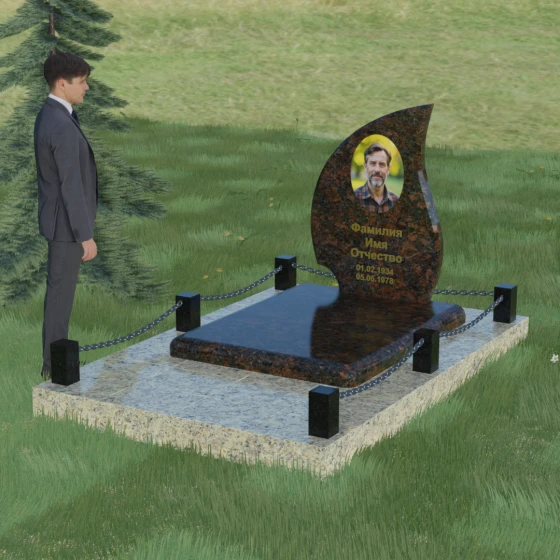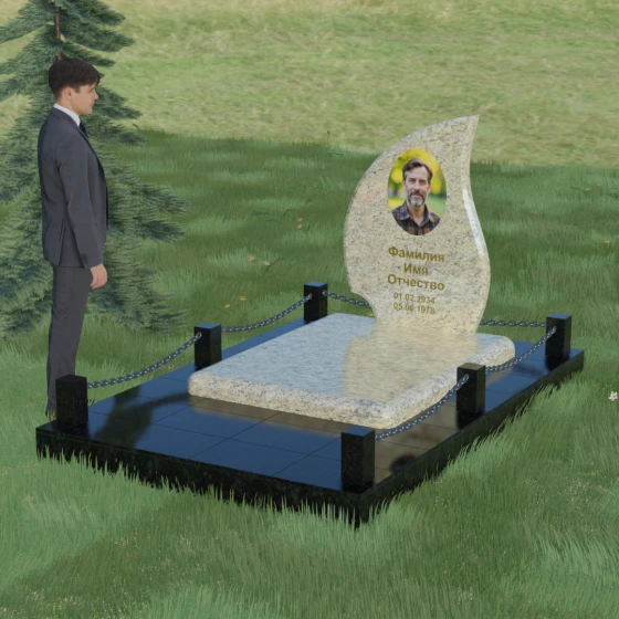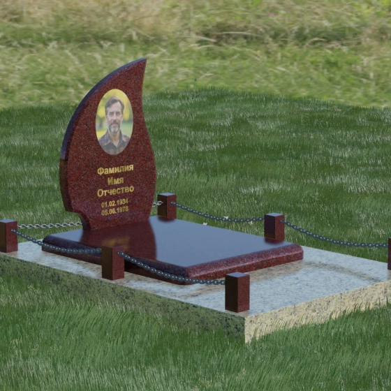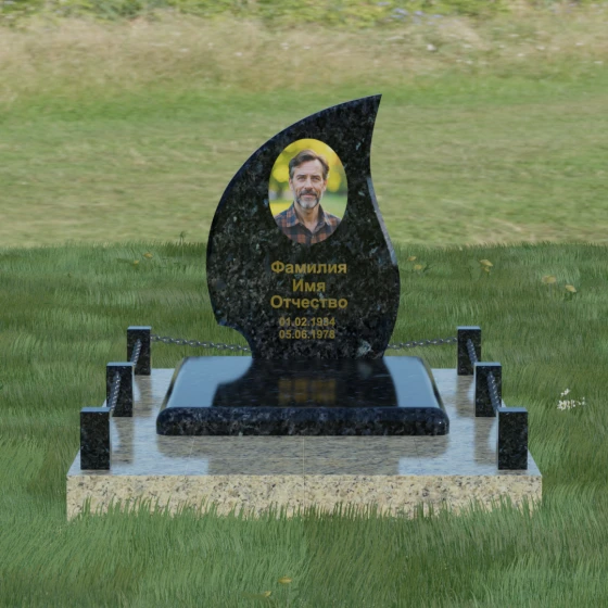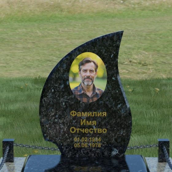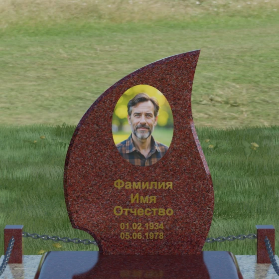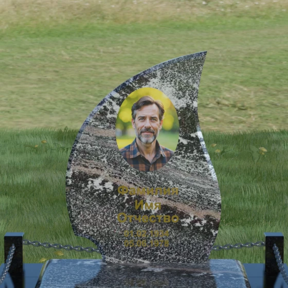 Кому подойдет: Данная модель является универсальным решением. Благодаря плавным изгибам и форме «пламени», она часто выбирается для оформления женских захоронений, олицетворяя нежность и скорбь. В то же время, строгость линий и массивность основания позволяют устанавливать этот памятник на могилах мужчин, подчеркивая их силу духа и статус. Выбор одного из 8 видов камня поможет дополнительно индивидуализировать мемориал: например, темный Габбро подчеркнет строгость, а светлый Мансуровский гранит или мрамор Тассо — чистоту и светлую память об ушедшем человеке.