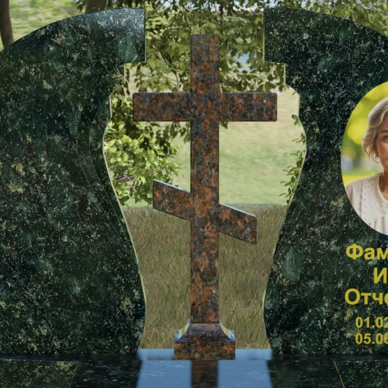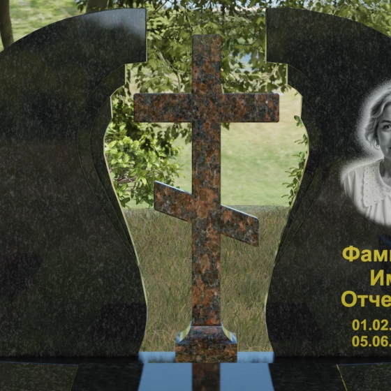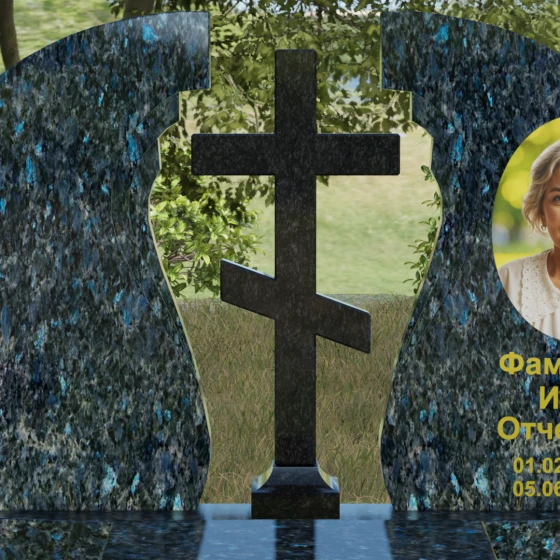 Оформление и дизайн: Благодаря большой площади полированного полотна, эта модель идеально подходит для классической гравировки. Мы рекомендуем использовать сусальное золото или глубокую пескоструйную обработку для нанесения ФИО — это особенно эффектно смотрится на темных сортах камня. Портрет может быть выполнен как в виде классической гравировки, так и в виде фотокерамики в изящной нише, что мы видим на примере данной модели. Расположение художественных элементов на правой или левой части стелы позволяет гармонично сбалансировать визуальный ряд.