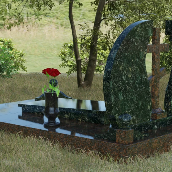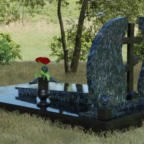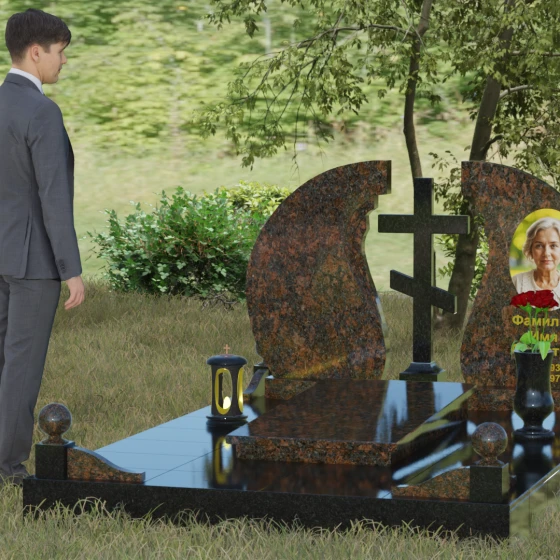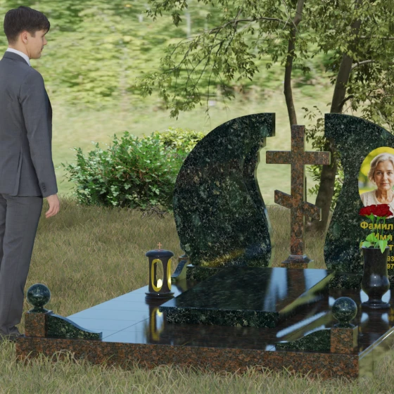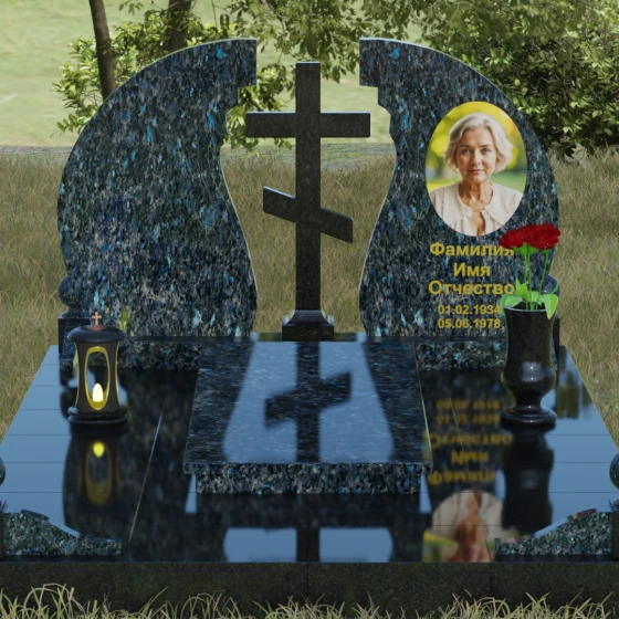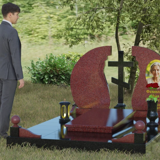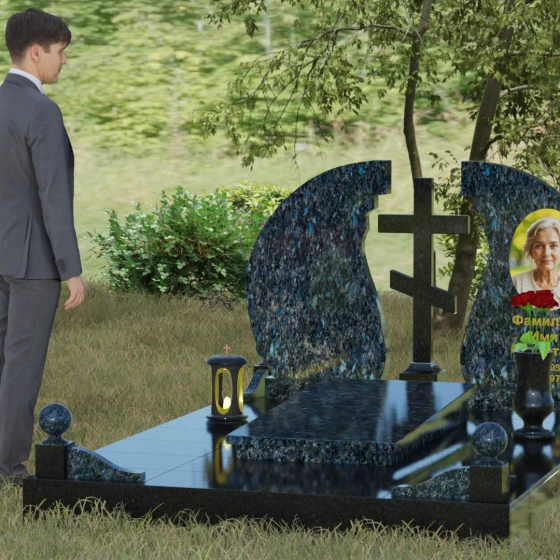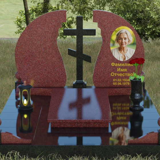 - Аксессуары: В едином стиле с комплексом выполнены гранитная ваза для живых цветов и закрытая лампада, свет которой символизирует вечную молитву о близком человеке.