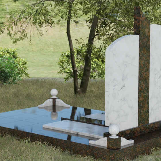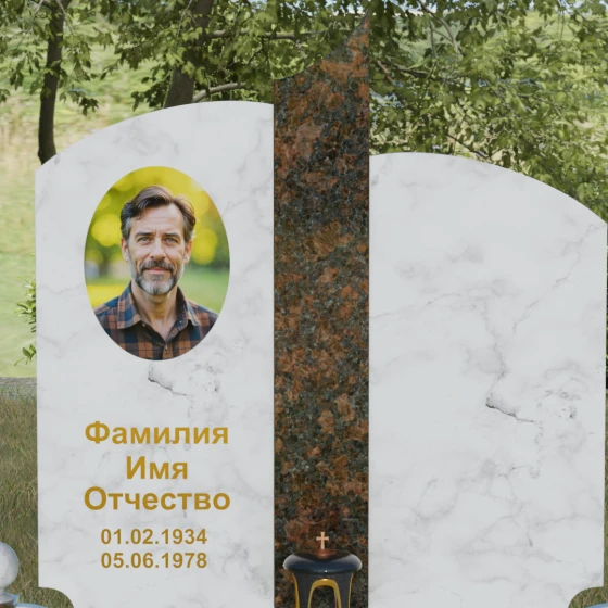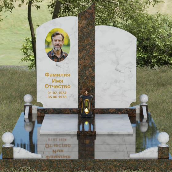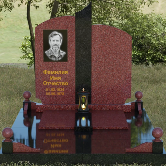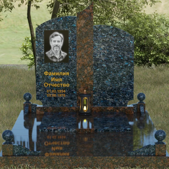 Чтобы мемориал максимально точно отражал характер ушедшего близкого человека, мы предлагаем выполнение этой модели в 8 различных цветовых решениях. Вы можете выбрать классическую строгость гранита Габбро-диабаз, благородную зелень Балтик грин или небесное мерцание Блю Перл. Для создания более теплых композиций идеально подойдет гранит Дымовский или насыщенный красный Лезниковский. Если вы хотите подчеркнуть чистоту и светлую память, обратите внимание на белоснежный мрамор Тассо или лаконичный гранит Мансуровский. Сочетание основного темного камня с контрастной вставкой из гранита Амфиболит позволит создать уникальный визуальный ритм.