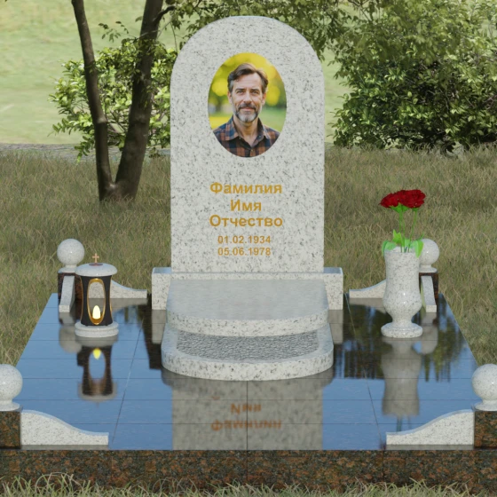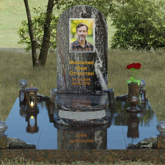 Мы предлагаем этот гранитный монумент в восьми различных цветовых решениях, что позволяет индивидуализировать мемориал, отразив в камне характер ушедшего человека. На выбор доступны семь видов элитного гранита: строгий и глубокий Габбро-диабаз, благородный коричнево-бордовый Дымовский, величественный красный Лезниковский, белоснежный с темными включениями Мансуровский, экзотический изумрудный Балтик грин, уникальный пятнистый Амфиболит и сияющий синими искрами лабрадорит Блю Перл. Также модель может быть выполнена из изысканного светлого мрамора Тассо, который ценится за свою чистоту и аристократизм. Такое многообразие позволяет создать как строгий мужской образ, так и более нежную, светлую женскую композицию.