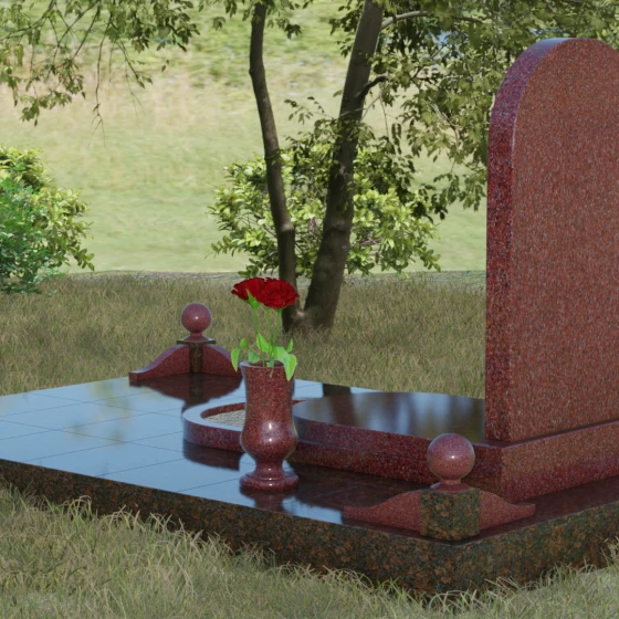 В состав комплекса входят важные декоративные аксессуары: изящная гранитная ваза для живых цветов и закрытая лампада (подсвечник), выполненная в едином стиле с основным изваянием. Лампада защищает огонь памяти от ветра, а ваза позволяет поддерживать порядок и красоту.