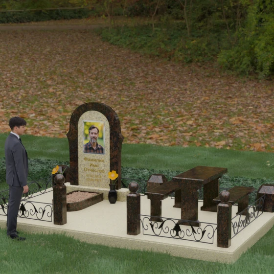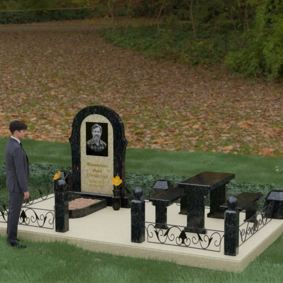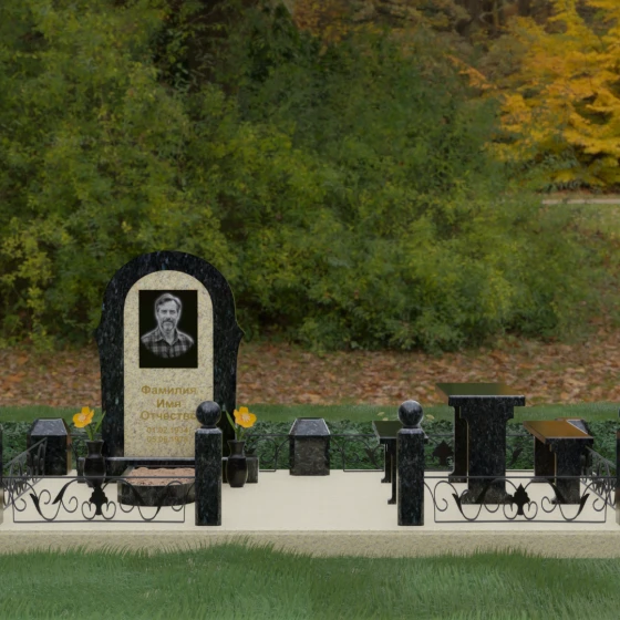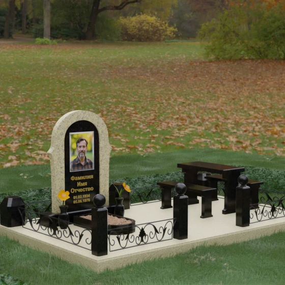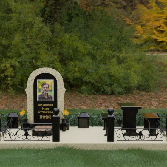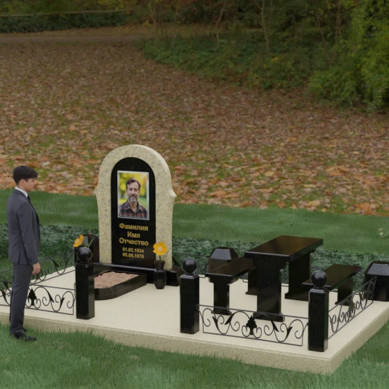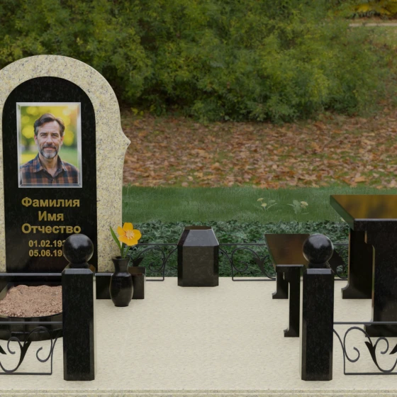 Советы по оформлению: Благодаря арочной форме и широкому центральному полю, данная модель идеально подходит для размещения крупного фотокерамического портрета. Высокий контраст полированного камня позволяет использовать технологию глубокой гравировки ФИО с последующим покрытием сусальным золотом или «под золото». Золотистый шрифт на темном фоне в сочетании со светлой рамой подчеркнет элитарный статус мемориала и сделает надпись читаемой на долгие десятилетия.