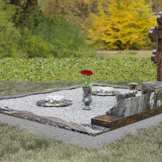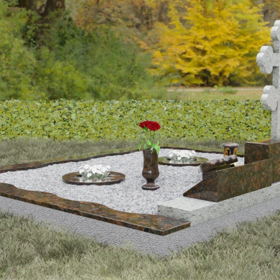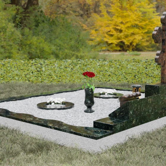 Данное надгробие спроектировано как полноценная архитектурная форма для семейного захоронения. Оно включает в себя не только стелы, но и комплексное благоустройство участка, обеспечивающее надежность и эстетичный вид на десятилетия: