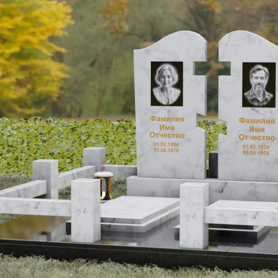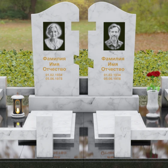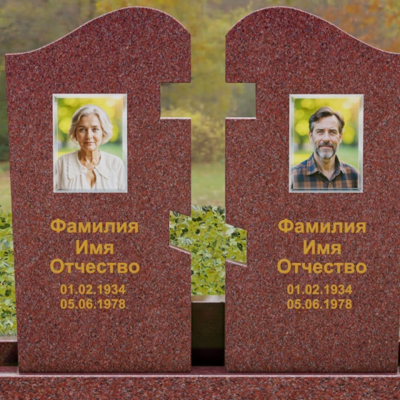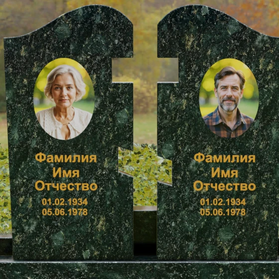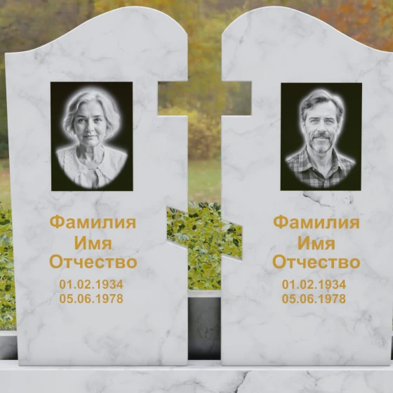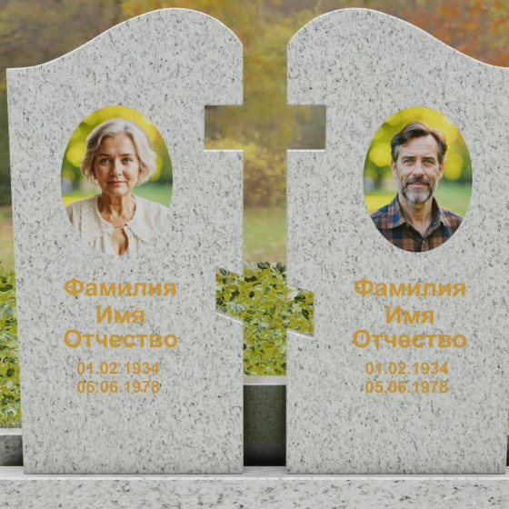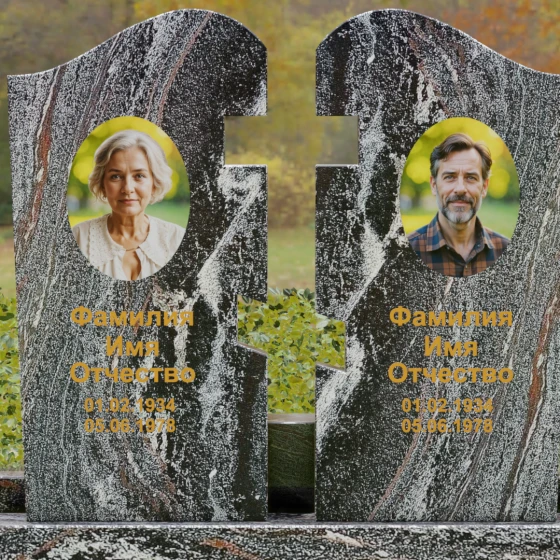 Оформление: Для данной модели мы рекомендуем использовать контрастную гравировку. Портреты в виде медальонов или художественной гравировки идеально вписываются в верхнюю часть обелисков. Текст (ФИО и даты), выполненный глубокой рубкой с последующим покрытием сусальным золотом, будет великолепно смотреться на темных сортах гранита, подчеркивая торжественность момента. На светлых камнях, таких как Мансуровский или мрамор Тассо, лучше отдать предпочтение глубокому гравированию с контрастным заполнением букв.