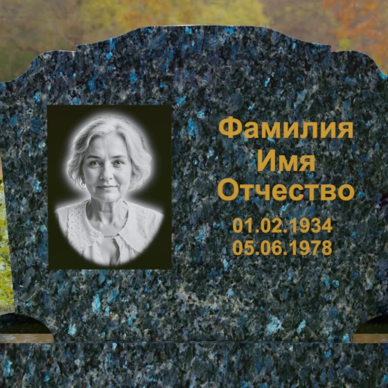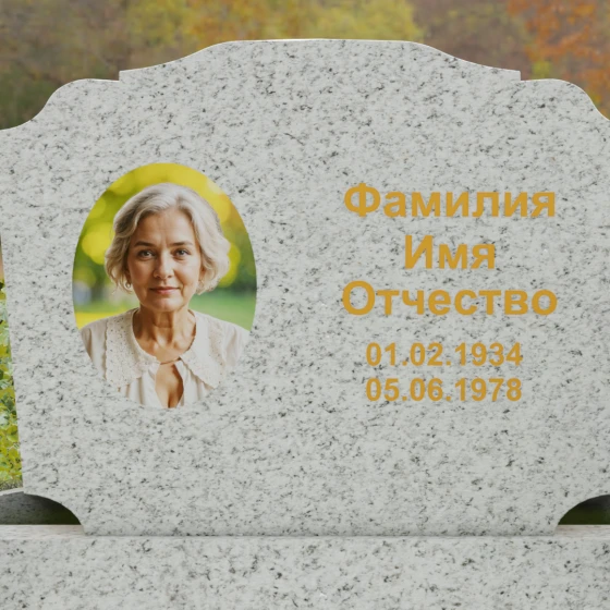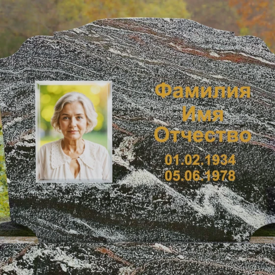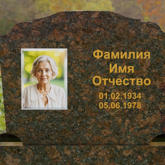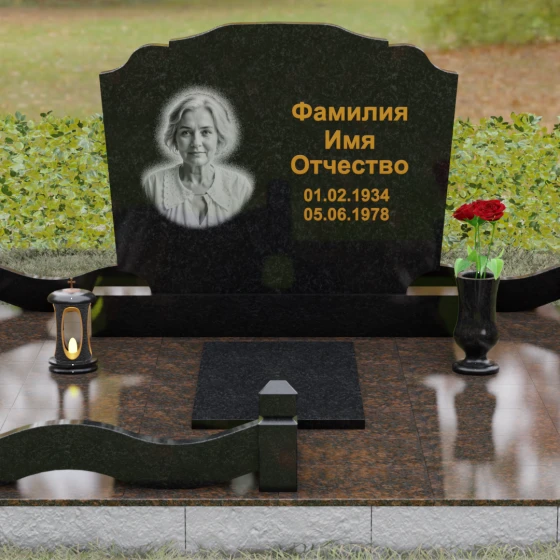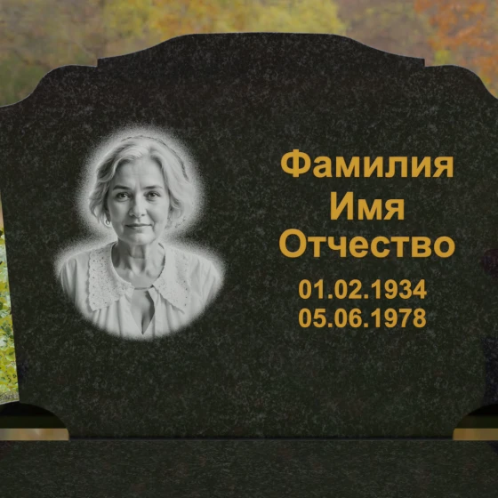 Горизонтальная форма основной плиты открывает широкие возможности для художественного оформления. Просторная поверхность позволяет идеально сбалансировать портрет и текстовую часть. Наиболее выигрышно смотрится классическое расположение: в левой части размещается гравированный портрет с мягкой растушевкой краев, а справа — каллиграфическая надпись. Контраст между зеркально-черной полировкой и светлым матовым срезом камня при гравировке создает эффект объемного, "живого" изображения, которое не сотрется под воздействием внешней среды.