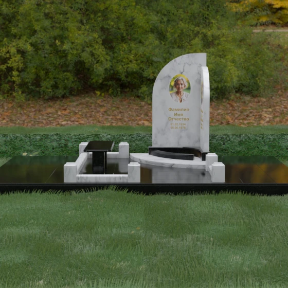 Кому подойдет: Данный ансамбль является универсальным и в то же время глубоко индивидуальным решением. Благодаря плавным изгибам стелы и возможности использования светлых вставок, он идеально подходит для оформления женского захоронения, символизируя нежность и светлую печаль. В то же время, масштабность конструкции и строгое мощение делают его достойным выбором для семейного мемориала или памятника уважаемому главе семьи. Это выбор тех, кто ценит современный европейский стиль, чистоту линий и хочет обустроить место памяти максимально достойно и на века.