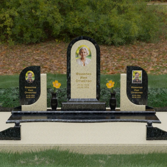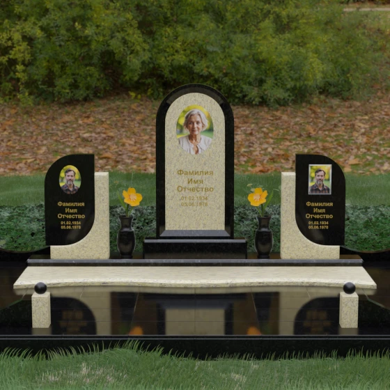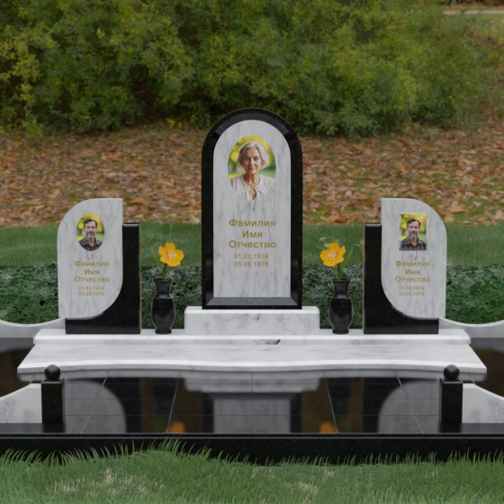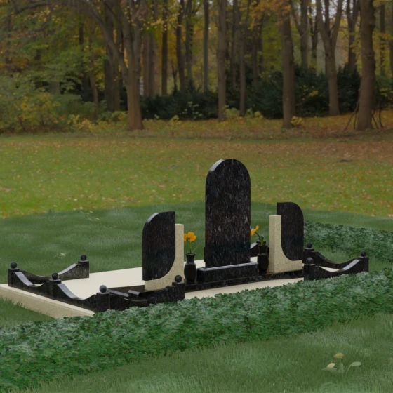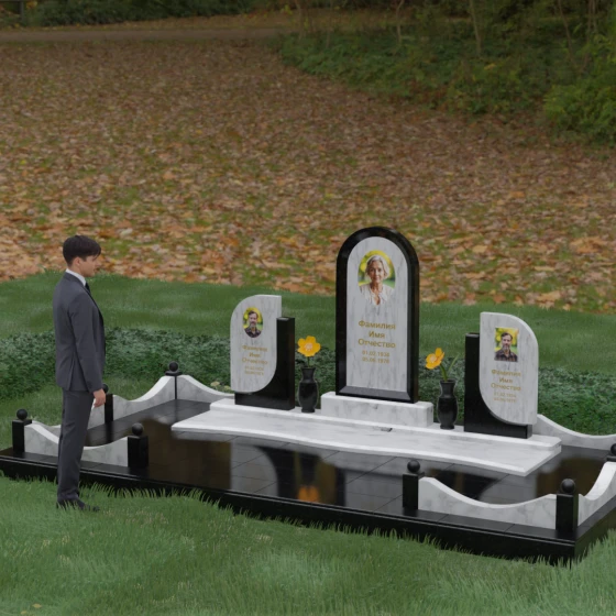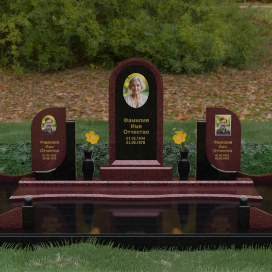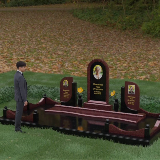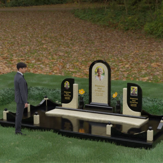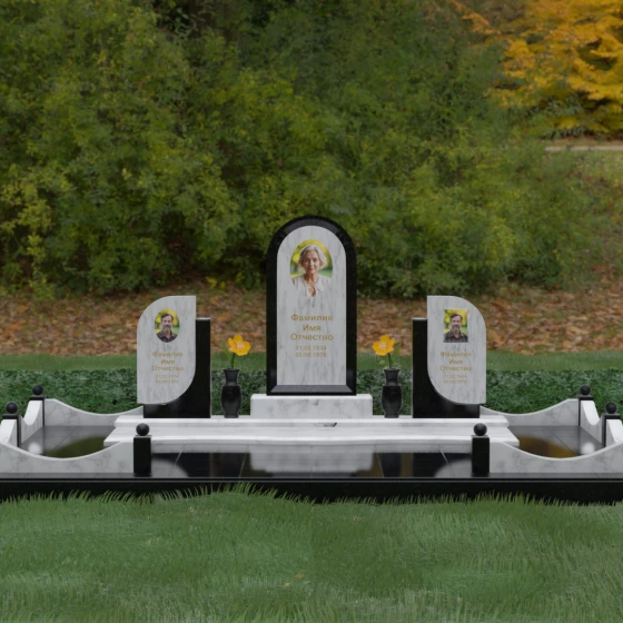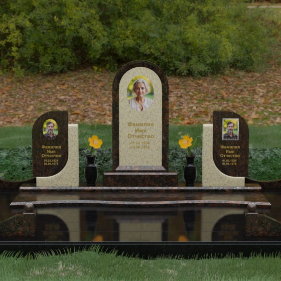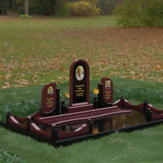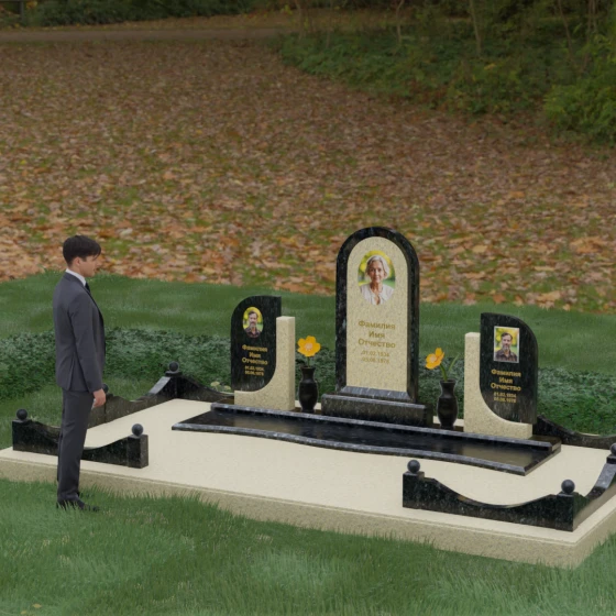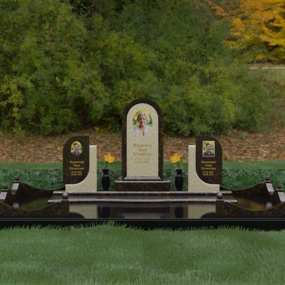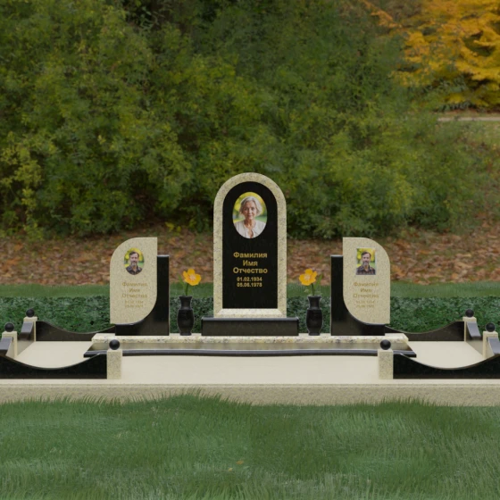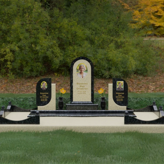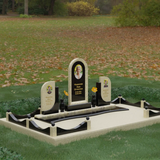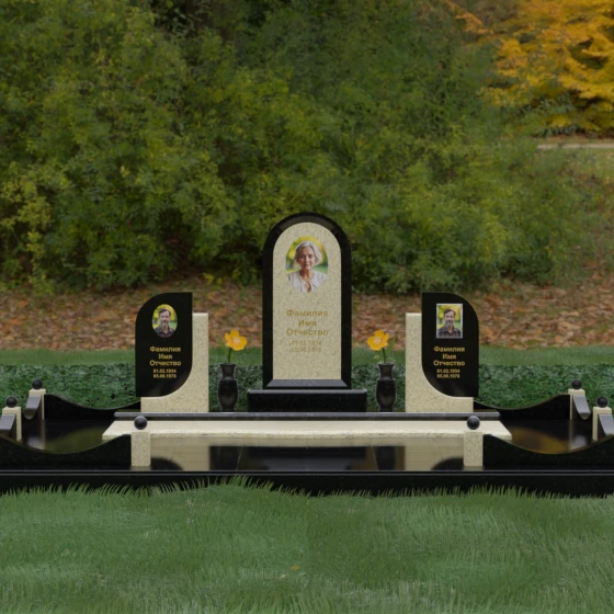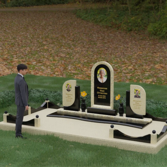 Кому подойдет: Этот мемориальный комплекс — идеальный выбор для оформления семейного захоронения на троих человек. Благодаря центральной арке и симметричным боковым элементам, он прекрасно подходит для почтения памяти родителей и ребенка или супружеской пары с близким родственником. Архитектура комплекса позволяет объединить разные судьбы в общую историю, создавая величественный родовой пантеон, который станет местом силы и тихой скорби для многих поколений вашей семьи.