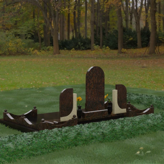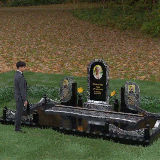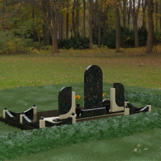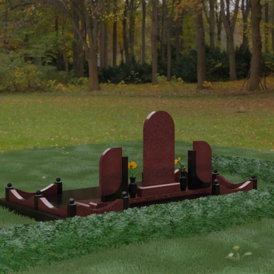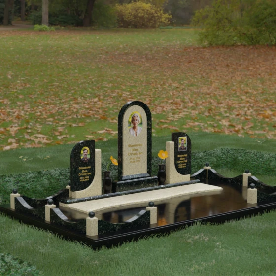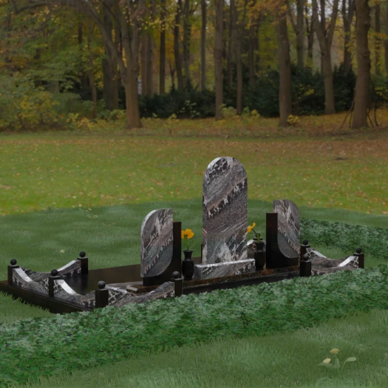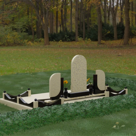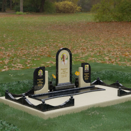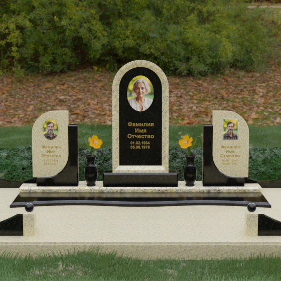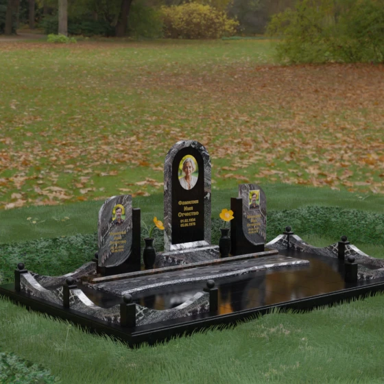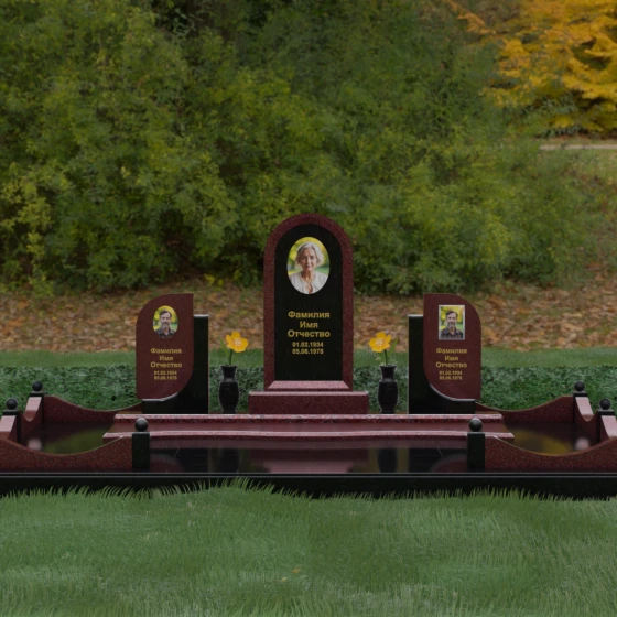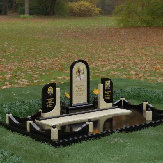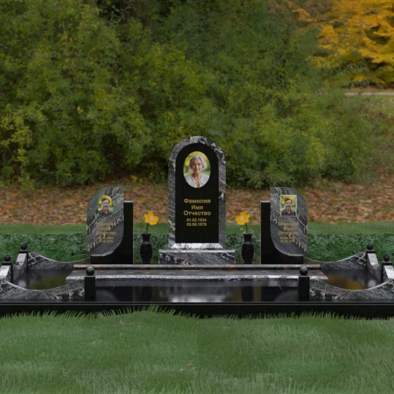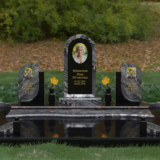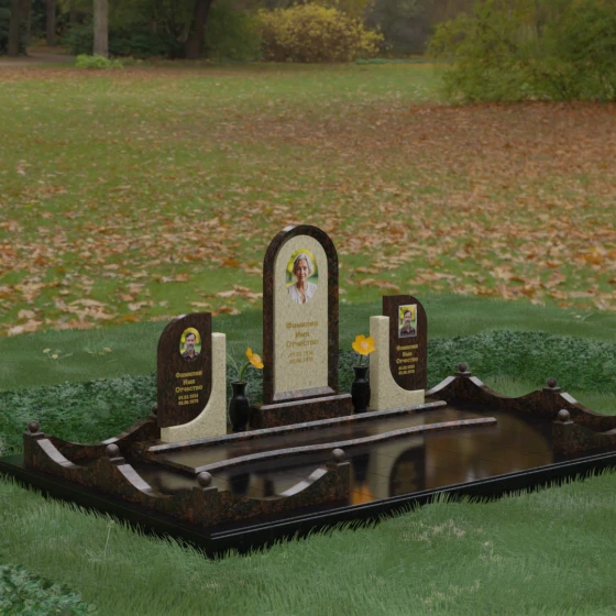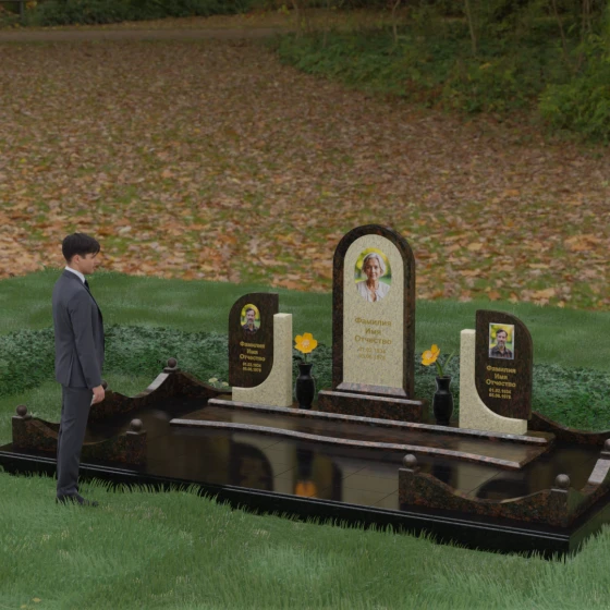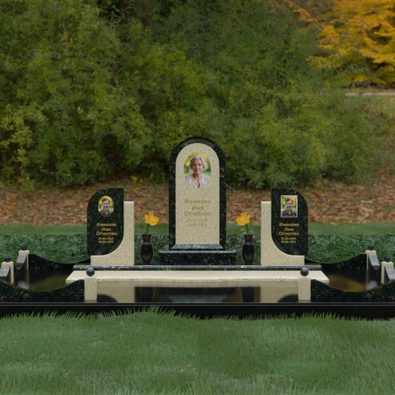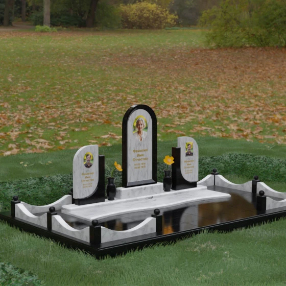 Кому подойдет: Этот мемориальный комплекс — идеальный выбор для оформления семейного захоронения на троих человек. Благодаря центральной арке и симметричным боковым элементам, он прекрасно подходит для почтения памяти родителей и ребенка или супружеской пары с близким родственником. Архитектура комплекса позволяет объединить разные судьбы в общую историю, создавая величественный родовой пантеон, который станет местом силы и тихой скорби для многих поколений вашей семьи.