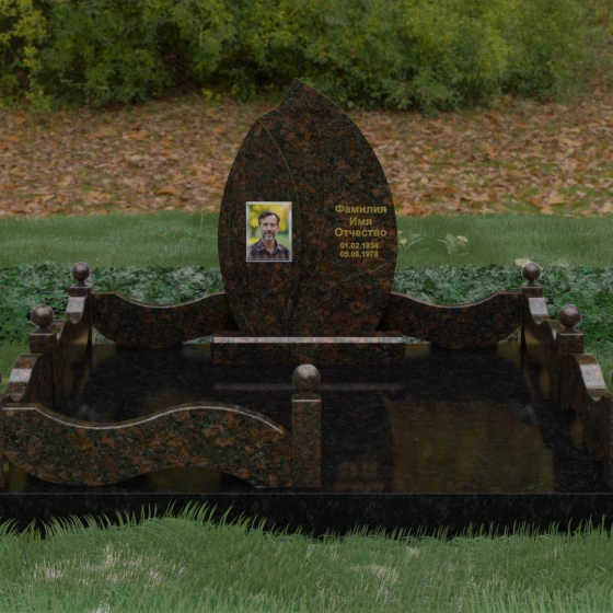 Конфигурация данной модели продумана с учетом эргономики мемориального искусства. Светлая часть вертикального элемента предназначена для нанесения фотокерамики или гравированного портрета — на светлом фоне черты лица выглядят мягче и отчетливее. Темная сторона с безупречной полировкой идеально подходит для золоченой гравировки или накладных букв: фамилия, имя и даты жизни будут читаться легко даже с большого расстояния, сохраняя четкость контуров под любым углом освещения.