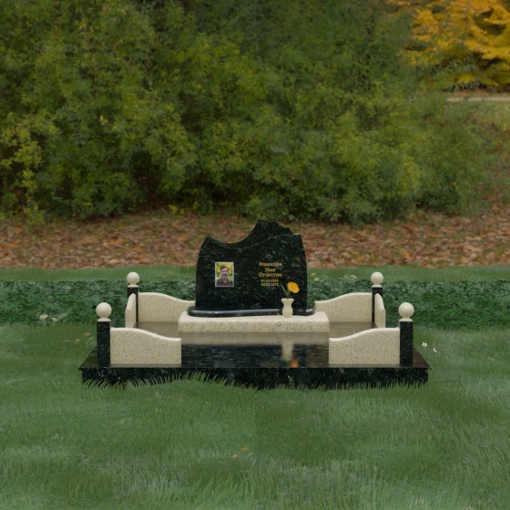• Каменная ваза: В центре предусмотрена компактная ваза из натурального гранита, предназначенная для живых цветов, что позволяет поддерживать традиции поминовения в едином стиле с монументом.