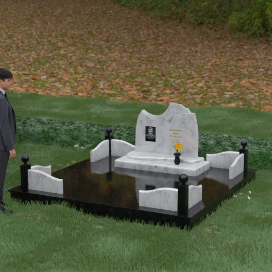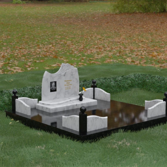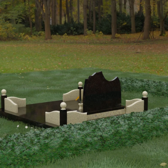Данная модель предполагает комплексный подход к оформлению захоронения, что превращает участок в аккуратное и благородное место памяти. Благоустройство включает в себя несколько ключевых элементов: