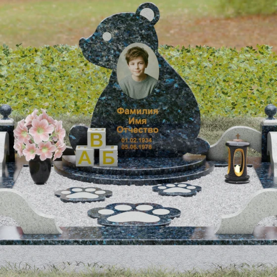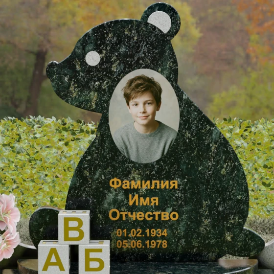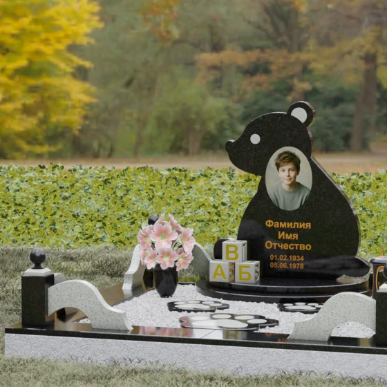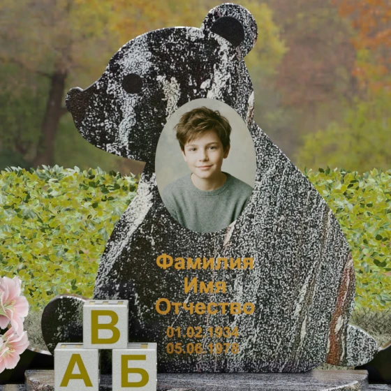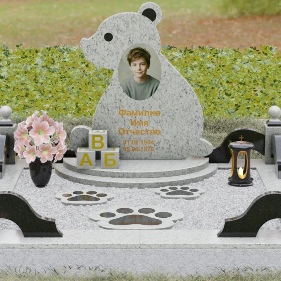 Кому подойдет: Данная модель разработана специально для оформления захоронения ребенка. Она идеально подходит родителям, желающим выразить свою безграничную любовь и горечь утраты через светлый и понятный образ. Сочетание монументальности натурального гранита и трогательной формы «мишки» позволяет создать атмосферу светлой памяти, подчеркивая, что душа близкого человека навсегда останется окруженной заботой и теплом.