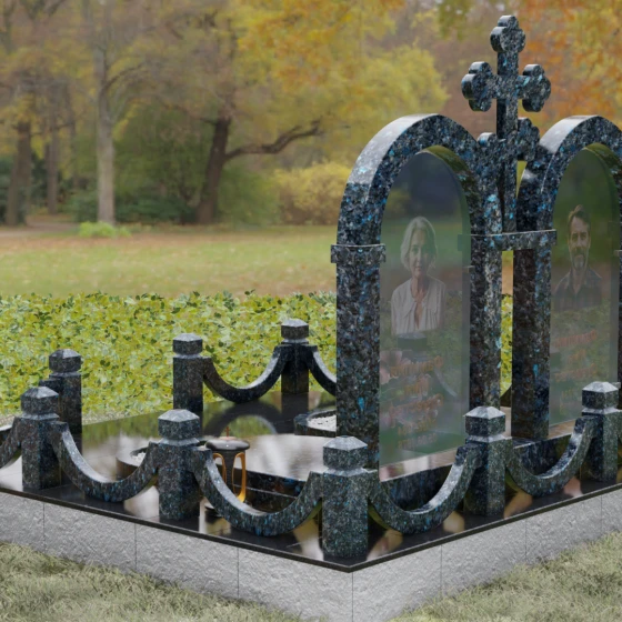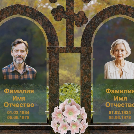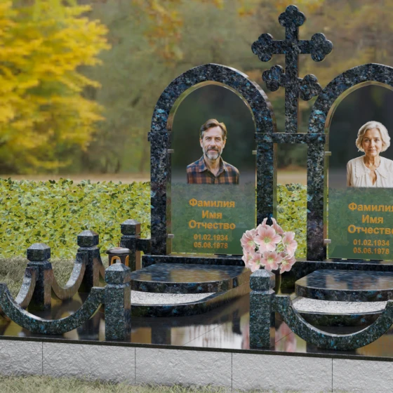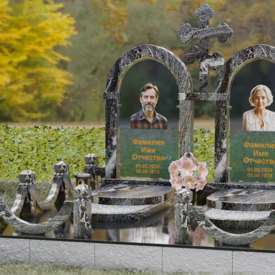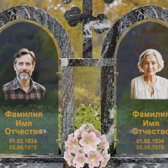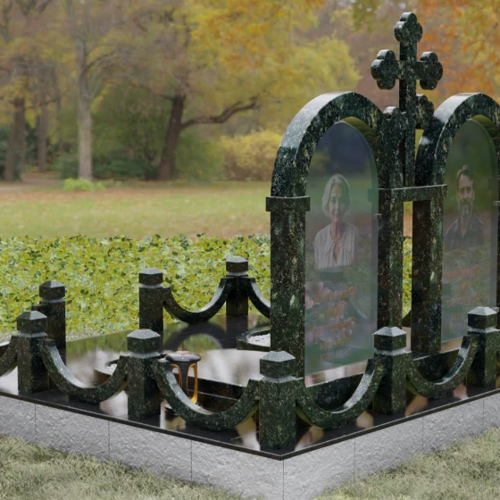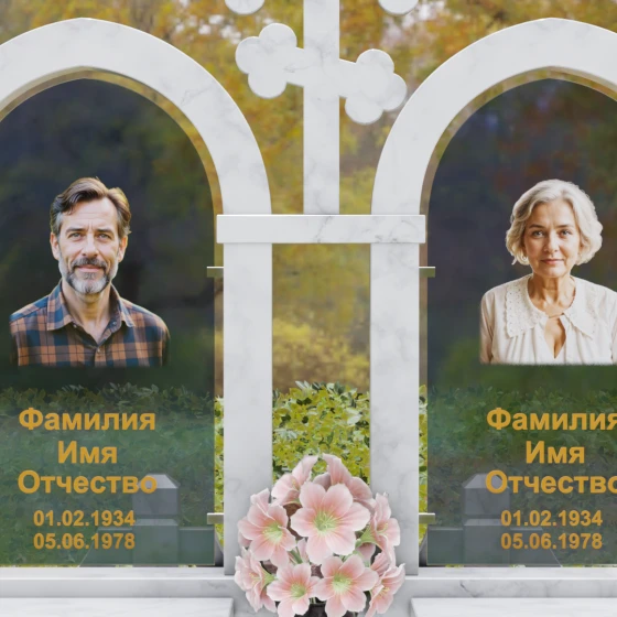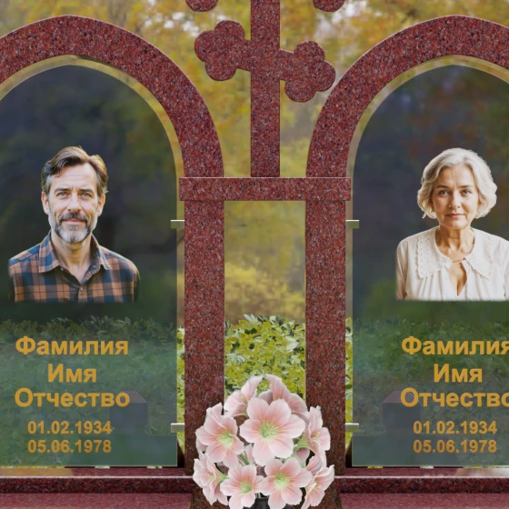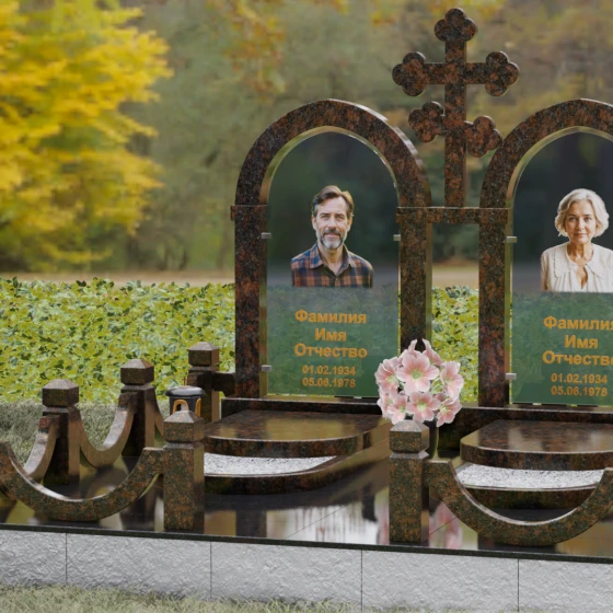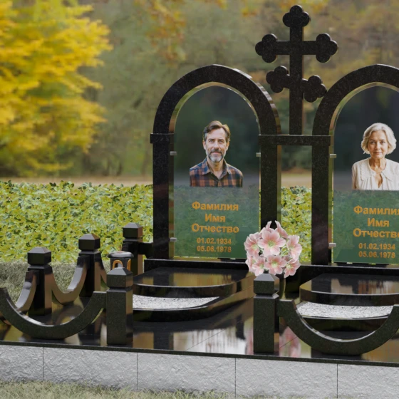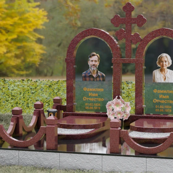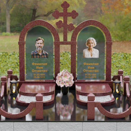 Кому подойдет: Данная модель разработана специально для семейного захоронения. Двойная арочная структура идеально подходит для увековечивания памяти родителей, супругов или братьев и сестер, объединяя их в одном сакральном пространстве, но сохраняя индивидуальность каждого. Выраженный православный крест делает этот комплекс предпочтительным выбором для верующих семей. Масштаб и архитектурная сложность исполнения подчеркивают высокий статус и глубокое уважение к усопшим, делая этот ансамбль заметным и значимым объектом на территории некрополя.