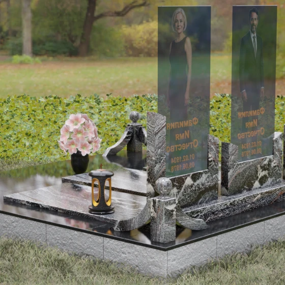 Выбор материала для столь масштабного сооружения — вопрос не только эстетики, но и долговечности. Данная модель доступна в 8 уникальных цветовых решениях, что позволяет отразить индивидуальность ушедших близких. Вы можете выбрать глубокий черный гранит Габбро-диабаз для создания атмосферы вечного покоя, величественный красный гранит Лезниковский или редкий гранит Блю Перл с его магическим мерцанием. Также доступны гранит амфиболит с неповторимым рисунком, лесной гранит Балтик грин, благородный Дымовский, светлый и чистый гранит Мансуровский или изысканный белоснежный мрамор Тассо. Природная плотность этих пород гарантирует устойчивость к суровым морозам, влаге и выветриванию.