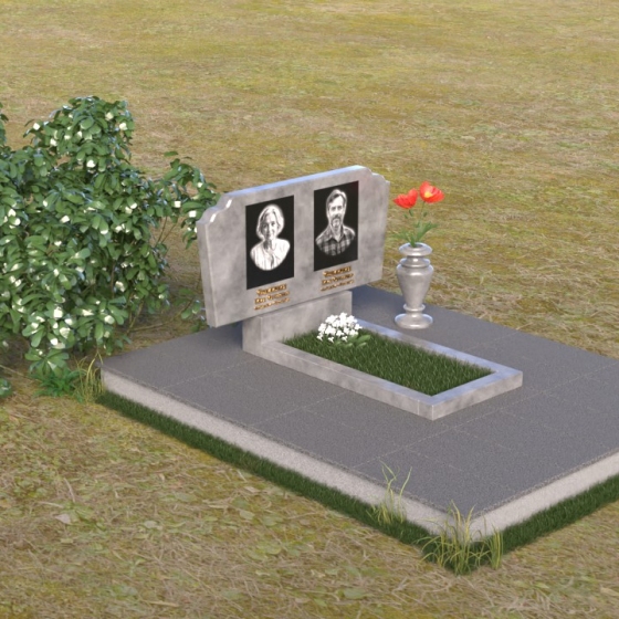 Оформление: Для этой формы стелы идеально подойдут гравировки портретов в овальной или прямоугольной рамке, выполненные в классическом стиле. Имя и фамилию можно разместить под портретами, используя элегантный шрифт с засечками, подчеркивающий торжественность момента. Небольшая эпитафия, выгравированная в нижней части стелы, станет завершающим штрихом, выражающим вашу любовь и скорбь.