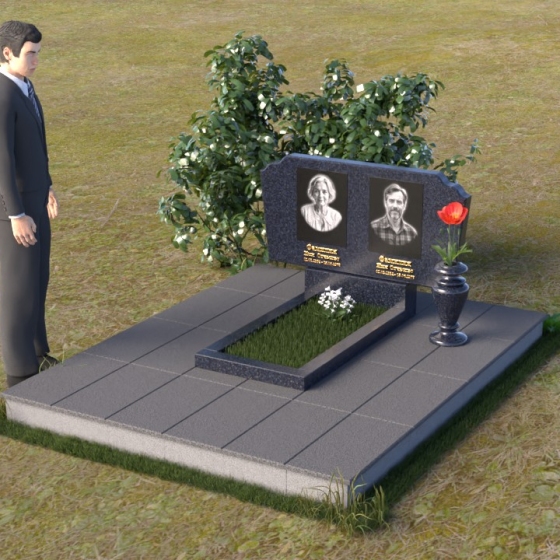 Верхняя часть стелы, выполненная в форме мягкой арки, несет на себе гравировку портретов усопших. Четкость линий, достигнутая современными технологиями, позволяет передать мельчайшие детали лиц, словно запечатлевая их живыми и смотрящими на нас из вечности. Нижняя тумба с зеркальной полировкой, служит основанием для стелы, и создает ощущение законченности и гармонии. Ее лаконичные формы подчеркивают строгость и достоинство всего комплекса.