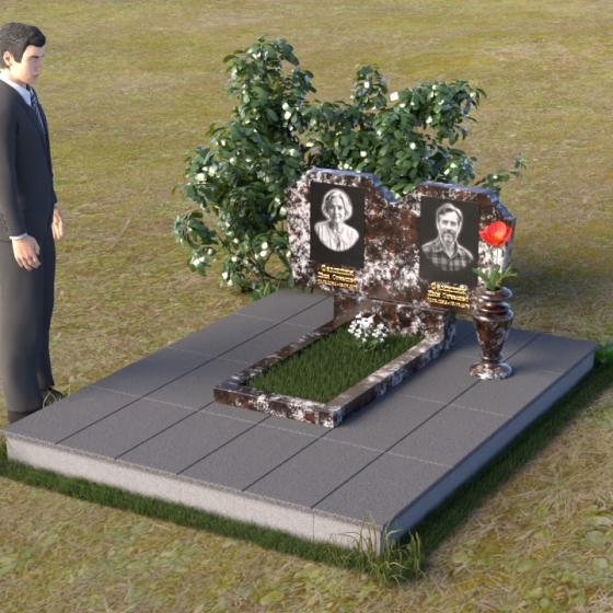 Форма стелы идеально подходит для размещения портретов усопших. Благодаря достаточно большой площади поверхности, можно разместить не только портреты, но и эпитафии, отражающие самые важные черты характера и жизненные ценности. Текст, выполненный методом гравировки, будет четким и долговечным. Вертикальное расположение стел позволяет акцентировать внимание на лицах ушедших, создавая ощущение их присутствия рядом. Наличие подставки под вазу позволяет украсить место захоронения живыми или искусственными цветами, которые добавят красок и жизни в мемориальную композицию. Красная роза, изображенная на одной из стел, символизирует любовь и память, которые навсегда останутся в сердцах близких.