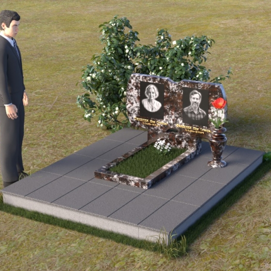 Этот гранитный монумент воплощает в себе строгость и элегантность, создавая достойное обрамление памяти. Лаконичная форма верхней плиты, сочетающая в себе плавные изгибы и прямые линии, словно рассказывает историю жизни, полную как светлых, так и трудных моментов. Зеркальная полировка черного гранита притягивает взгляд, отражая небо и окружающий мир, создавая ощущение глубины и вечности. Контраст полированной поверхности с выгравированными портретами создает эффект объемности и реалистичности, позволяя сохранить дорогие черты ушедших близких. Сдержанный дизайн памятника позволяет ему гармонично вписаться в любой ландшафт, не нарушая тишину и покой места упокоения.