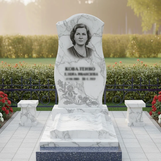 Этот памятник представляет собой элегантное сочетание классических форм и утонченного дизайна. Волнообразный силуэт стелы, словно застывшая мелодия, символизирует мягкость, женственность и светлую память. Модель доступна в восьми вариантах исполнения - от строгого черного гранита до изысканного белого мрамора Тассос, что позволяет подобрать идеальный вариант, отражающий индивидуальность ушедшего человека.