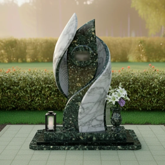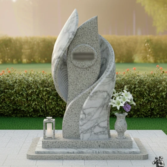 Этот памятник, словно застывшая волна нежности, заключает в себе воспоминания о близком человеке. Обтекаемые формы и контрастное сочетание двух видов камня символизируют гармонию жизни и вечный покой. Мягкие изгибы, словно крылья, обнимают центральную часть, предназначенную для портрета, создавая ощущение защиты и уюта. Модель доступна в 8 вариантах исполнения, от строгого гранита до светлого мрамора, что позволит максимально точно передать характер усопшего.