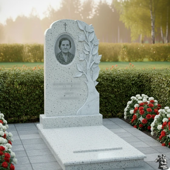 Этот мемориальный комплекс сочетает в себе строгость и нежность, создавая образ светлой памяти и вечной жизни. Плавные линии стелы, увенчанной резным "Древом Жизни", символизируют продолжение рода и неувядающую красоту души. Модель доступна в восьми вариантах исполнения, предлагая выбор из семи видов гранита и благородного мрамора Тассос, что позволяет создать мемориал, отражающий индивидуальность усопшего.