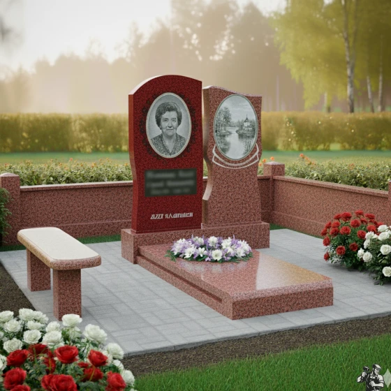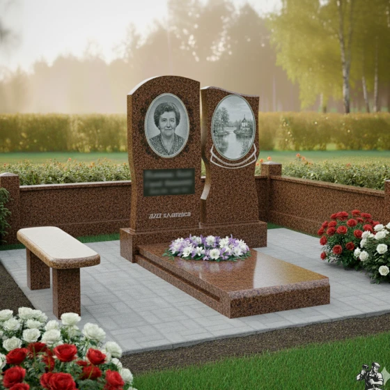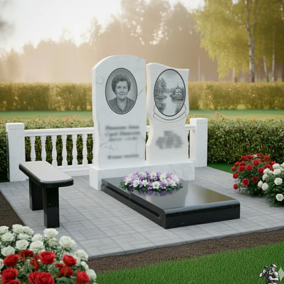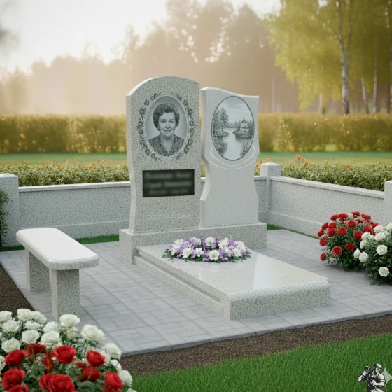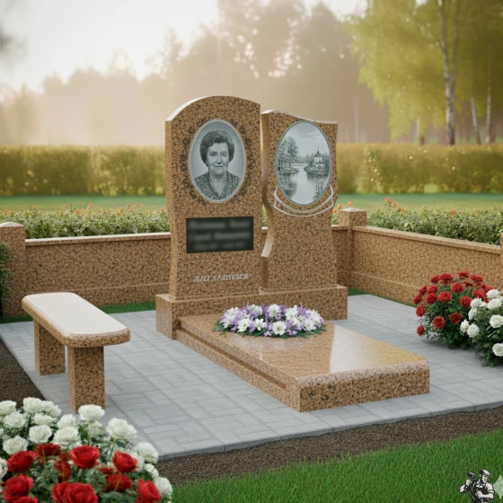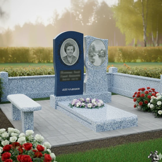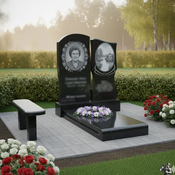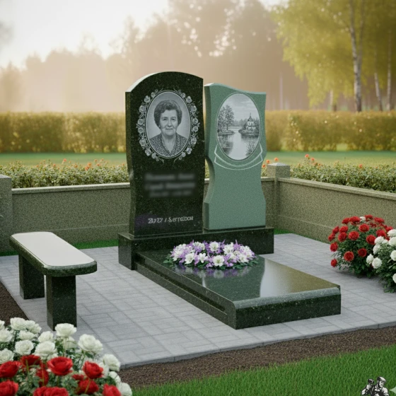 - Уход: Благодаря высококачественной полировке и плотности материала, уход за данным мемориальным комплексом минимален. Гладкая поверхность легко очищается от пыли и загрязнений влажной тканью, не требуя использования специальных средств. Надгробная плита предотвращает рост сорной травы, значительно облегчая поддержание порядка и чистоты на участке.