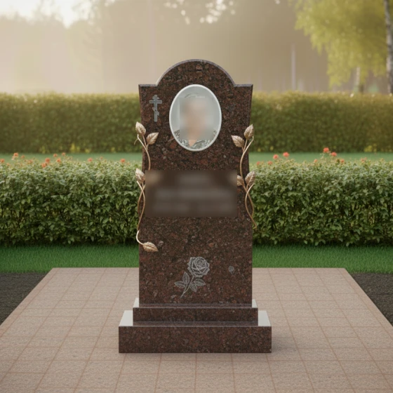 Конструкция стелы предусматривает идеальное место для размещения овального керамического портрета в верхней трети памятника. Такое расположение является композиционно оправданным: оно находится на уровне глаз и акцентирует внимание на лике ушедшего человека. Текстовый блок (ФИО и даты) располагается непосредственно под ветвями роз, что позволяет сохранить баланс между информативностью и эстетикой.