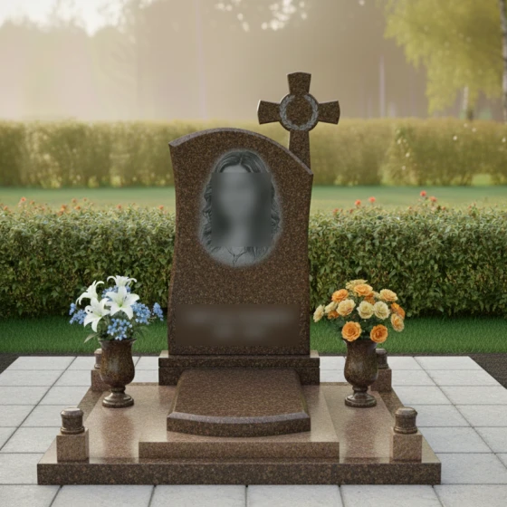 - Геометрия: Вертикальная асимметричная стела с интегрированным крестом и художественной резьбой.