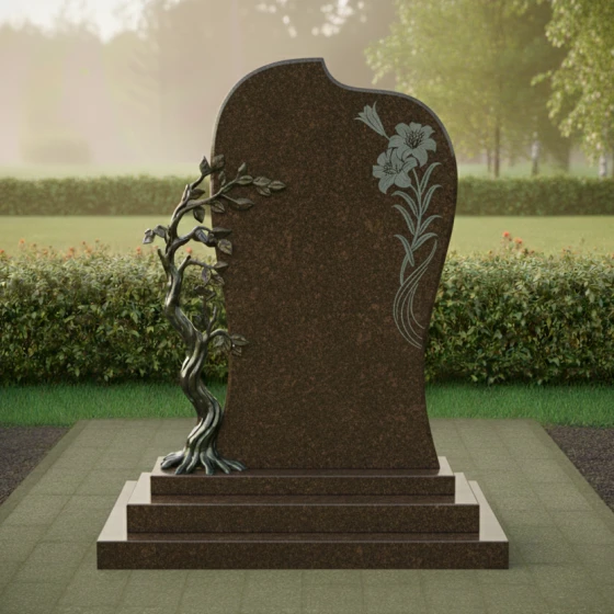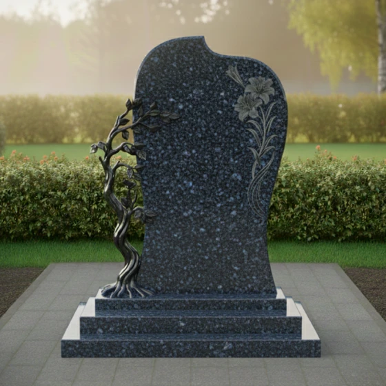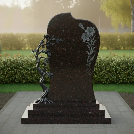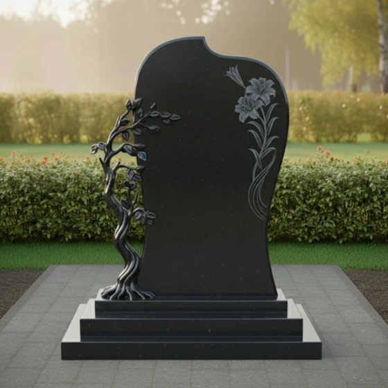 Данный монумент — это не просто дань традиции, а архитектурное воплощение любви и уважения. Сочетание сложной ручной резьбы, безупречной полировки граней и монументального трехъярусного основания делает эту модель идеальным выбором для создания достойного и долговечного места памяти. Каждая деталь здесь — от лепестка гравированной лилии до массивного ступенчатого фундамента — работает на создание атмосферы умиротворения и вечного достоинства.