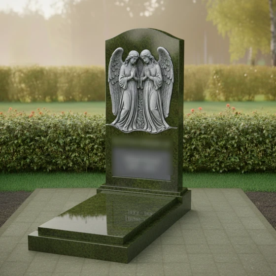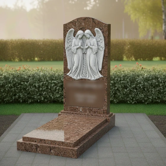 Кому подойдет: Данная модель является универсальным воплощением нежности и защиты. Благодаря присутствию ангелов-хранителей, памятник чаще всего выбирают для оформления женских захоронений — для матери, супруги, дочери или сестры. Фигуры молящихся ангелов символизируют вечное заступничество и покой души. В светлом исполнении (Мансуровский гранит или мрамор Тассо) мемориал выглядит особенно трогательно, олицетворяя чистоту и светлую память, в то время как темные виды гранита подчеркивают торжественность и величие момента прощания.