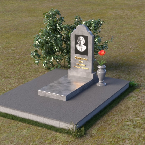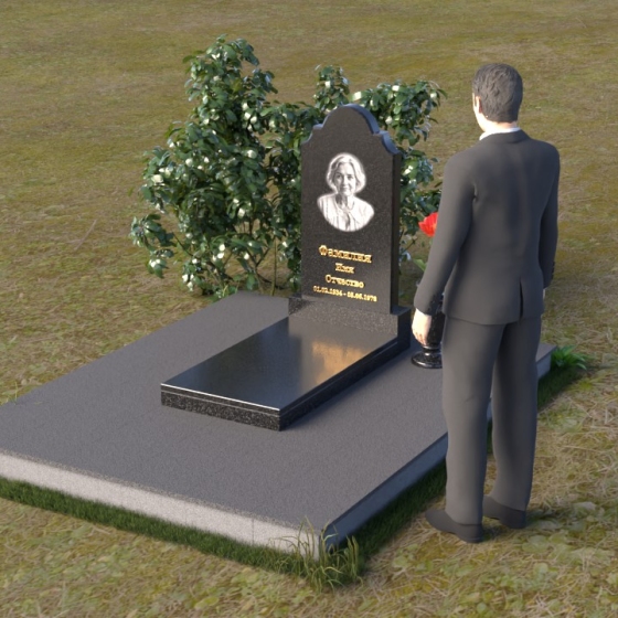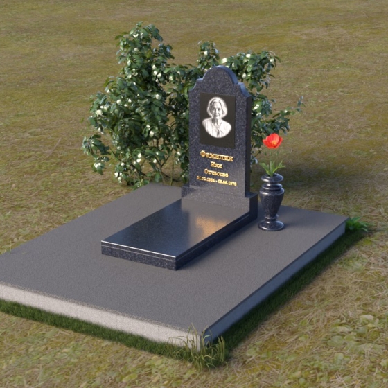 Арка, венчающая стелу, традиционно символизирует переход – врата в иной мир, обещание небесного покоя. Скругленные углы смягчают строгость камня, олицетворяя нежность и заботу, которые мы испытываем к ушедшим. Зеркальная полировка поверхности камня отражает свет, создавая ощущение чистоты и возвышенности. Горизонтальная плита символизирует основательность и стабильность, напоминая о прочной связи между поколениями. Общая форма композиции создает ощущение защиты и умиротворения, словно оберегая память о дорогом человеке от забвения.