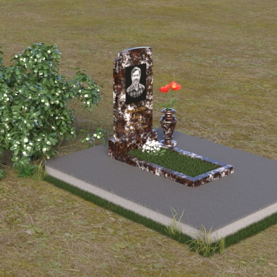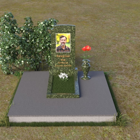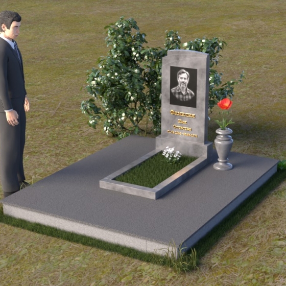 Мемориальная композиция ПВ 075 представляет собой элегантное и сдержанное решение, в котором гармонично сочетаются строгие геометрические формы и отполированные поверхности. Вертикальная стела, выполненная из прочного камня, имеет прямоугольную форму с мягко скругленными углами, что придает ей визуальную мягкость. На стеле расположено гравированное изображение усопшего, выполненное с высокой степенью детализации. Ниже портрета располагается надпись с именем и датами жизни, выполненная элегантным шрифтом. Горизонтальная плита, расположенная перед стелой, имеет идеально отполированную поверхность, отражающую небо и окружающий пейзаж, создавая ощущение глубины и покоя. Венчает композицию небольшая ваза из того же камня, предназначенная для цветов.