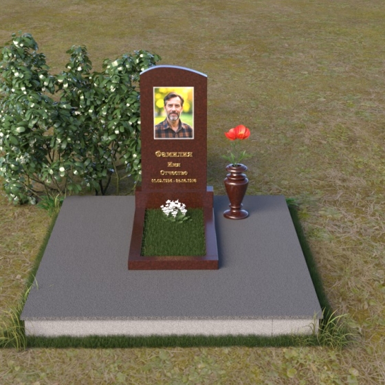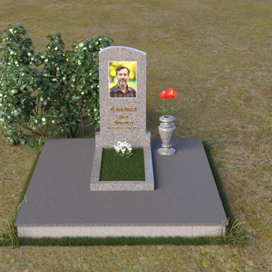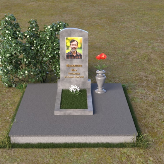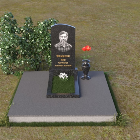 Оформление: Для этой формы оптимально подойдет гравировка портрета в верхней части стелы, выполненная с высокой детализацией. Ниже можно разместить ФИО усопшего и даты жизни, используя строгий, элегантный шрифт. Рекомендуем избегать излишней декоративности в надписях, чтобы сохранить лаконичный стиль композиции.