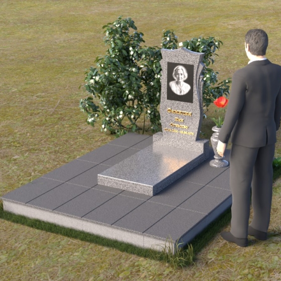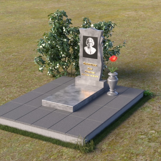 Основание памятника выполнено в виде горизонтальной плиты с зеркальной полировкой, которая отражает небо и окружающий ландшафт, создавая эффект легкости и воздушности. Дополнительная горизонтальная плита, расположенная ниже, служит надежной опорой для всей конструкции. Небольшая ваза, выполненная в едином стиле с памятником, предназначена для живых цветов, которые добавят красок и жизни в мемориальный комплекс. Общая геометрия модели, от основания до вершины, создает ощущение гармонии и завершенности, вписываясь в окружающий ландшафт.
