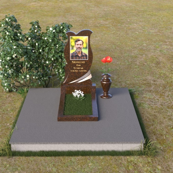 Форма стелы, сочетающая в себе черты сердца и бутона, несет глубокий символический смысл. Сердце – это символ любви, привязанности и памяти, а бутон – символ новой жизни и надежды на воскресение. Плавные линии и закругленные углы символизируют покой и умиротворение, а полированная поверхность – чистоту и светлую память об усопшем. Волна, вырезанная в нижней части стелы, может быть интерпретирована как символ перехода из земного мира в мир иной. В целом, композиция памятника создает ощущение гармонии, покоя и вечности.